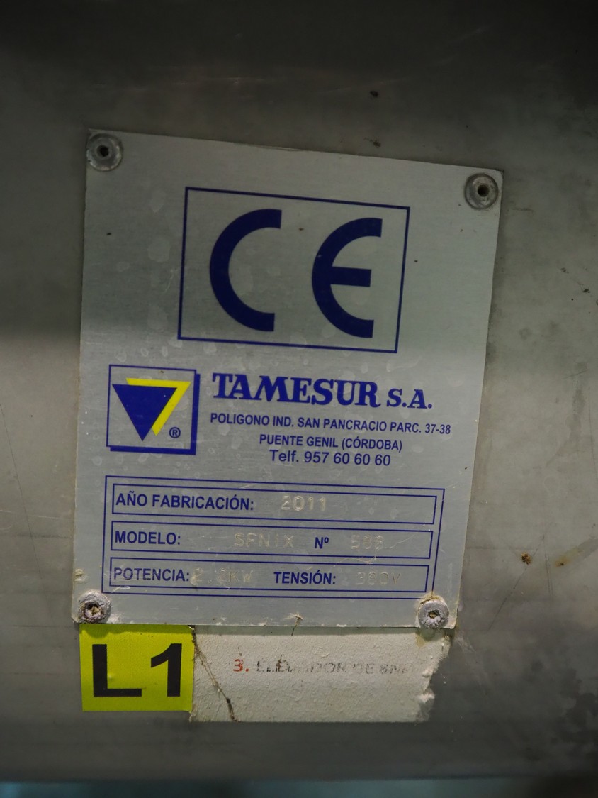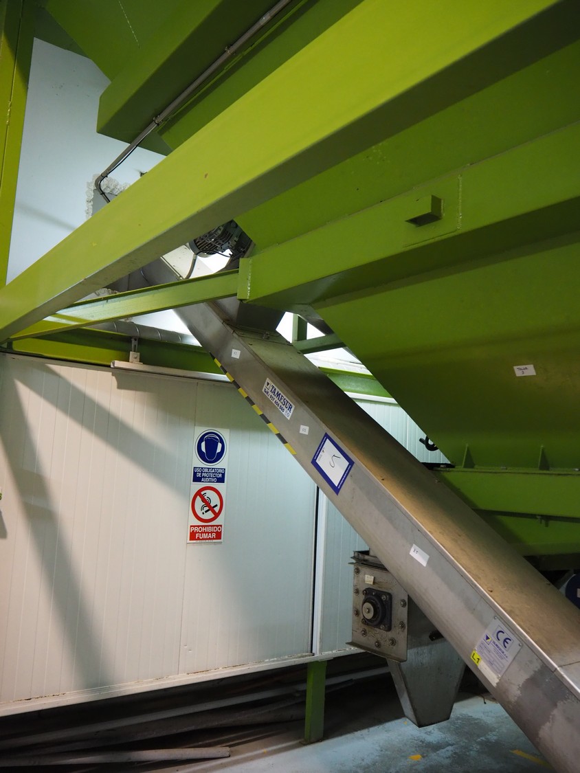 Tamesur S.A. elevating screw, model: SFNIX, number: 573, year of construction: 2011, 1.5 kW, elevating height: 4900 mm, total dimensions: 8500 mm x 650 mm x 5100 mm.