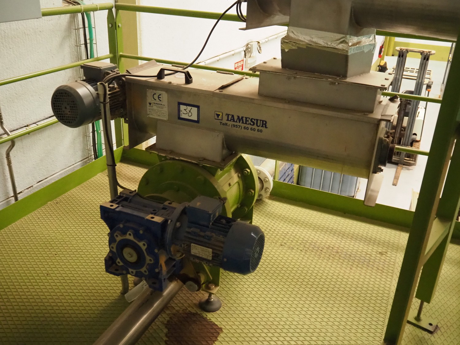 Tamesur S.A. transport screw, model: SFNIX, number: 704, year of construction: 2014, 380 V, 1.5 kW, diameter screw: 220 mm, tier: 160 mm, total dimensions: 1100 mm x 450 mm x 1350 mm.