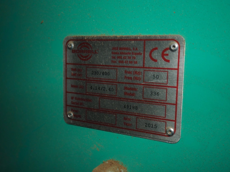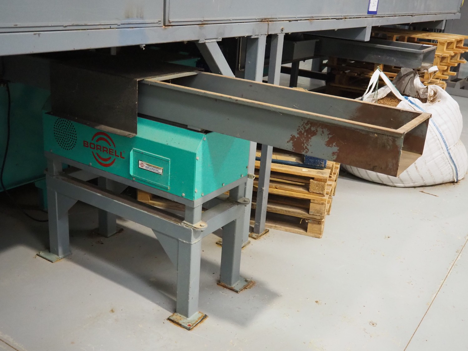 José Borrell S.A. vibrating gutter, model: 336, serial number: 49188, year of construction: 2015, 230/400 V, 50 Hz, 4.14/2.40 A, gutter width: 300 mm, total dimensions: 2100 mm x 500 mm x 1000 mm.