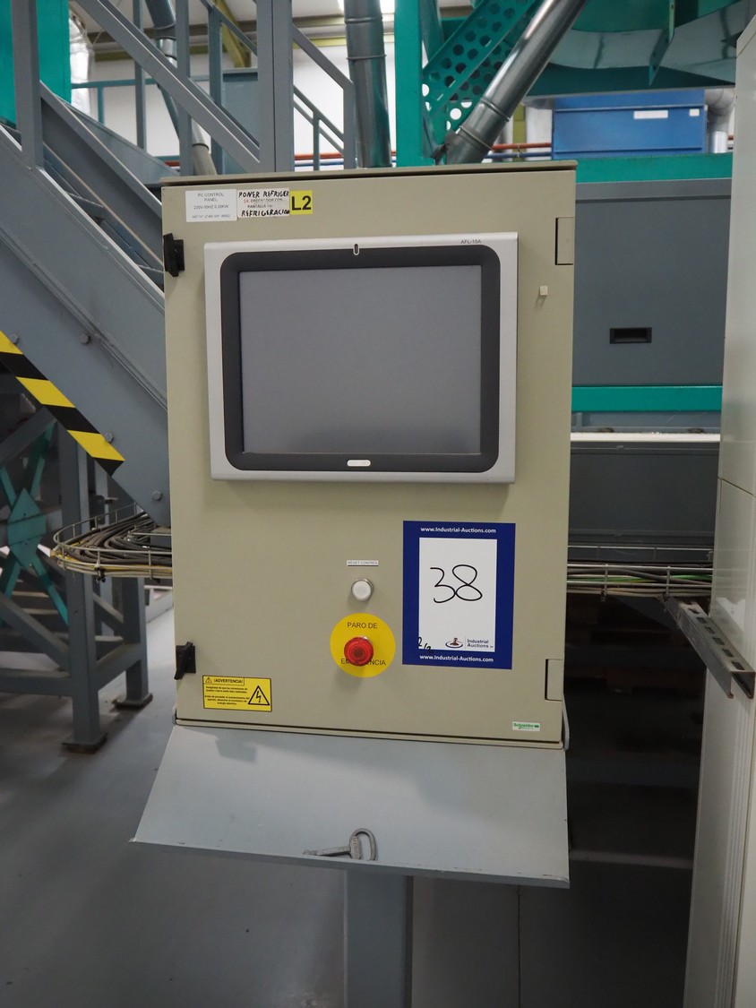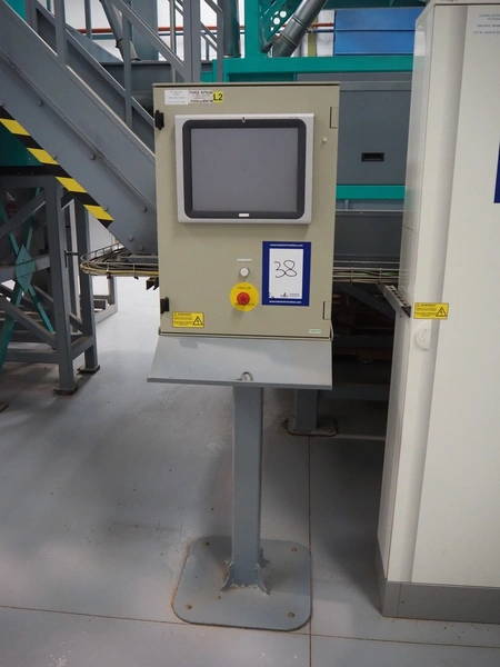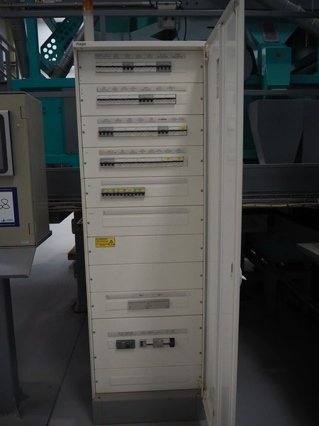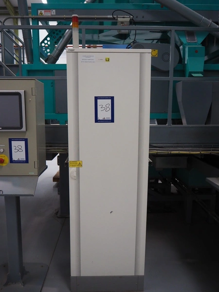 Steel control panel with switch cabinet, dimensions: 530 mm x 300 mm x 750 mm and 620 mm x 270 mm x 1980 mm.
