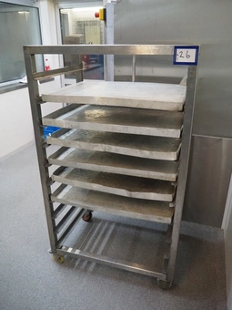 S/s trolley, 10 floors with 6 aluminium plates, dimensions plates: (6x) 750 mm x 550 mm x 40 mm, total dimensions: 850 mm x 620 mm …€ 100,000 bids17/12/2025 15:20 -
