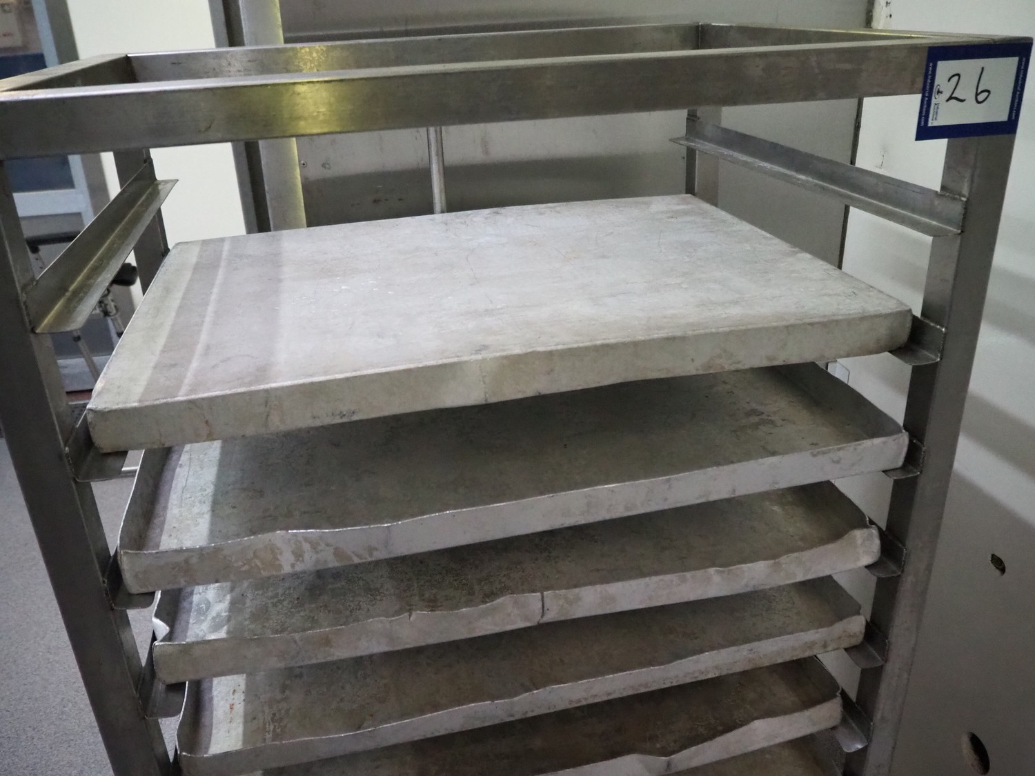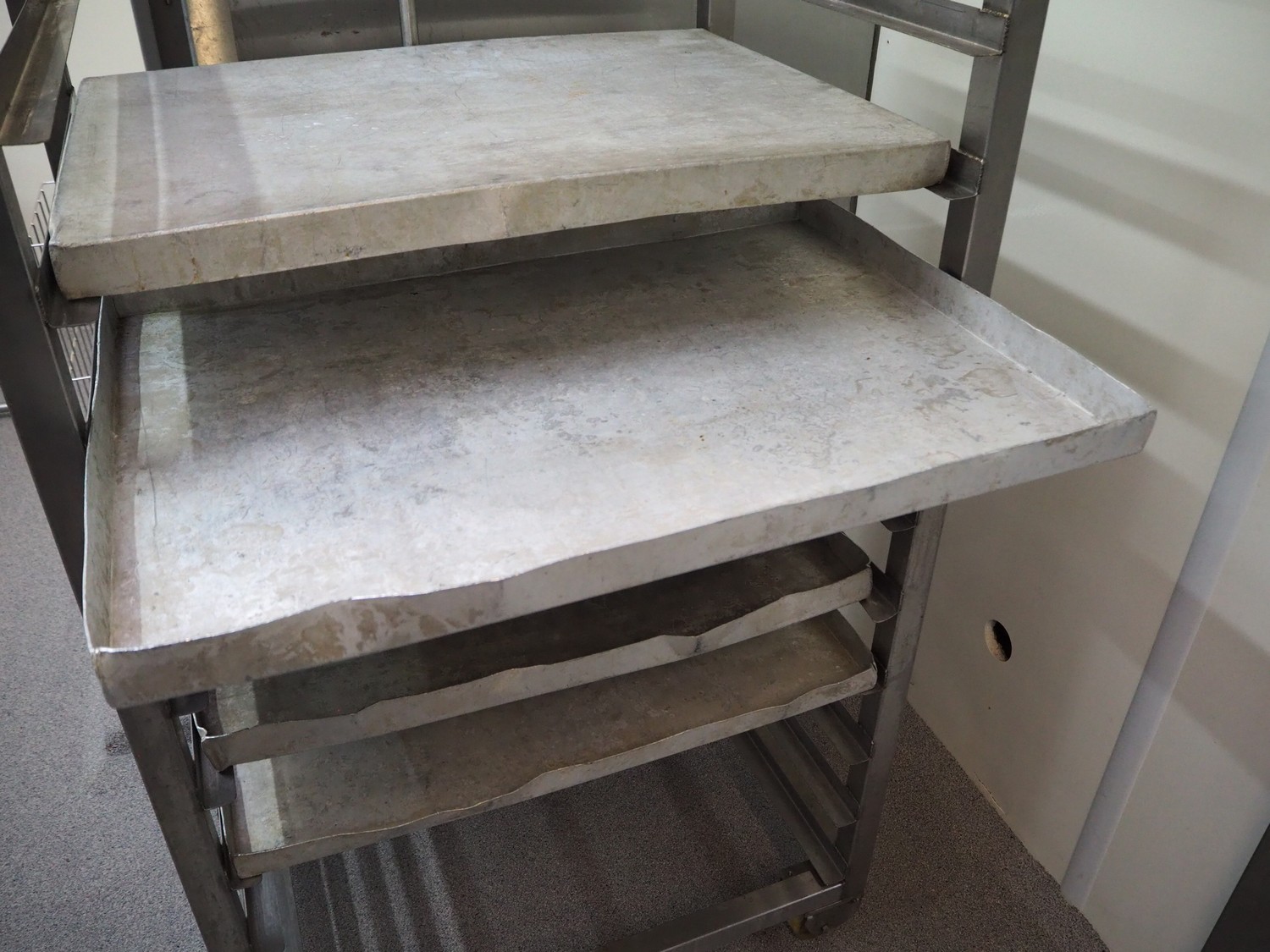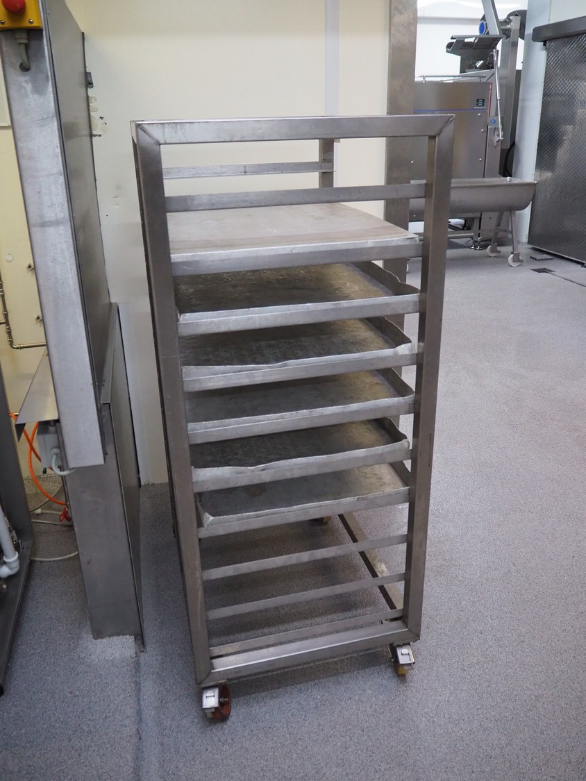 S/s trolley, 10 floors with 6 aluminium plates, dimensions plates: (6x) 750 mm x 550 mm x 40 mm, total dimensions: 850 mm x 620 mm x 1470 mm.