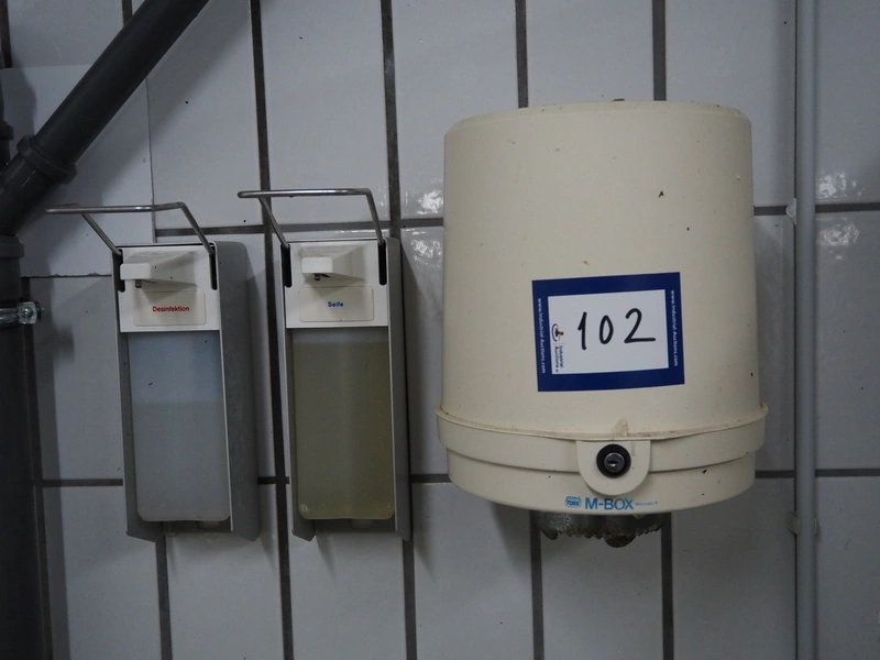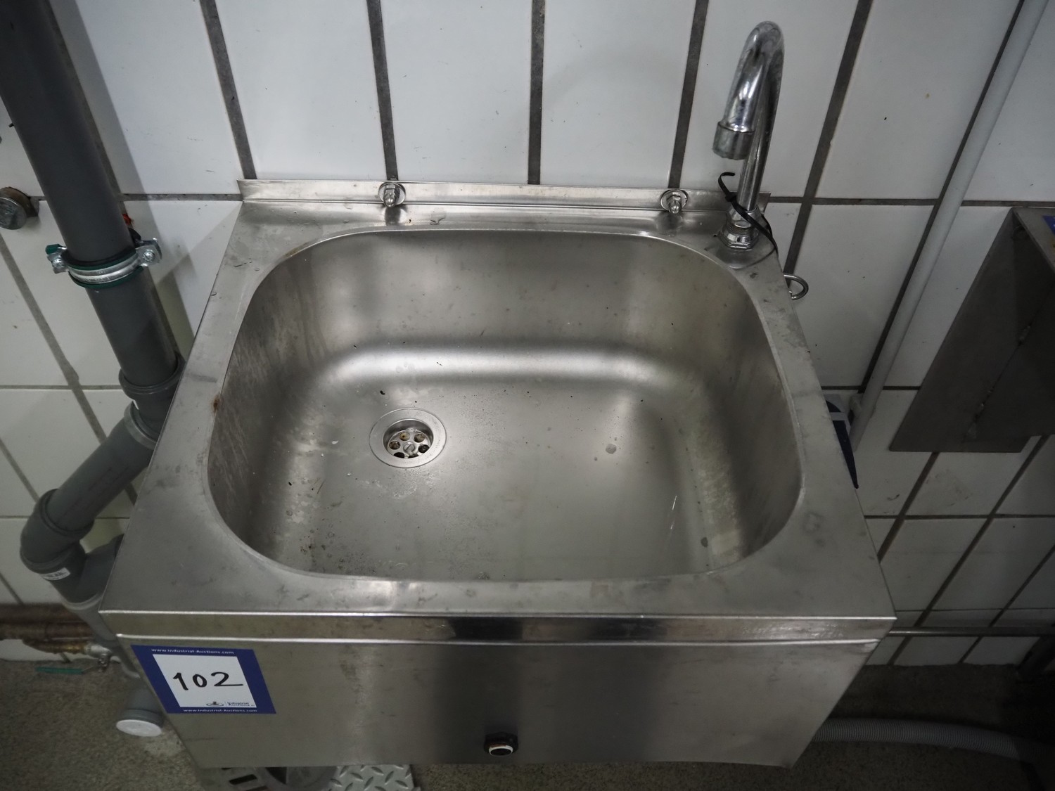 S/s sink with 1 faucet, sensor control, dimensions sink: 470 mm x 420 mm x 400 mm, Tork M-Box paper dispenser and 2 soap dispensers.