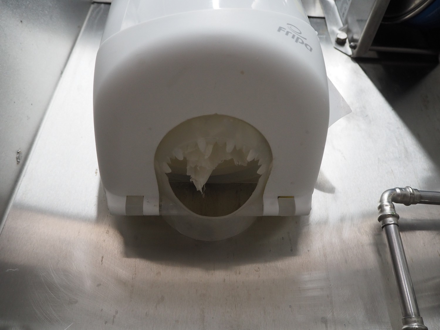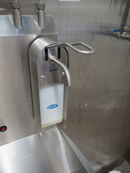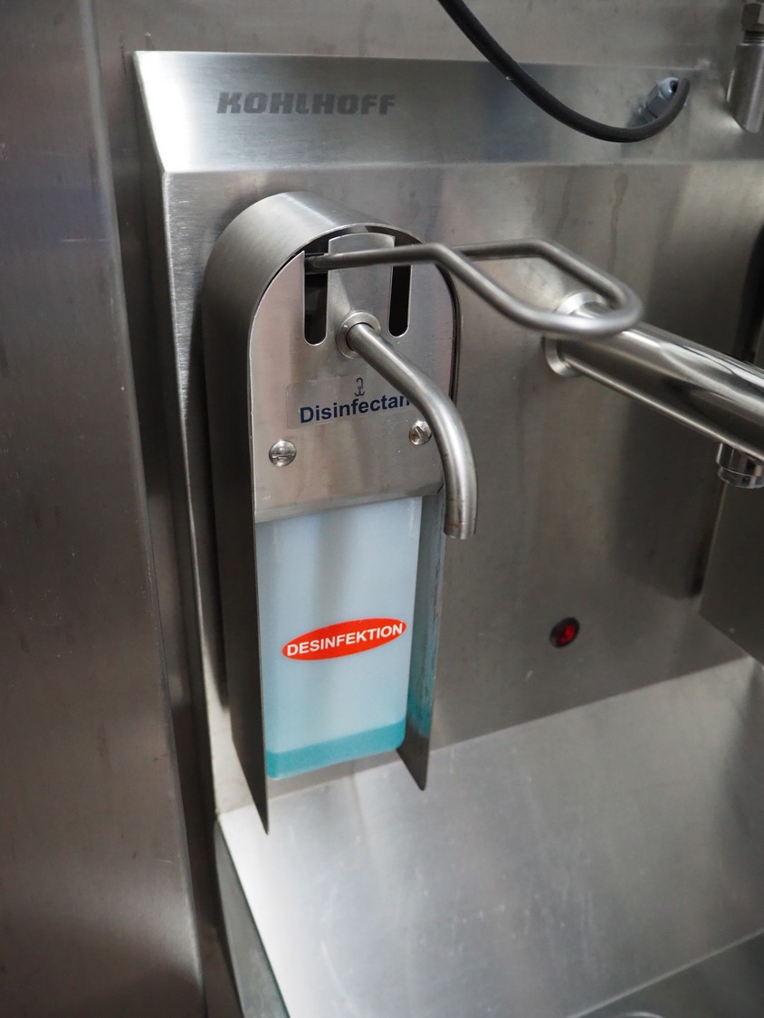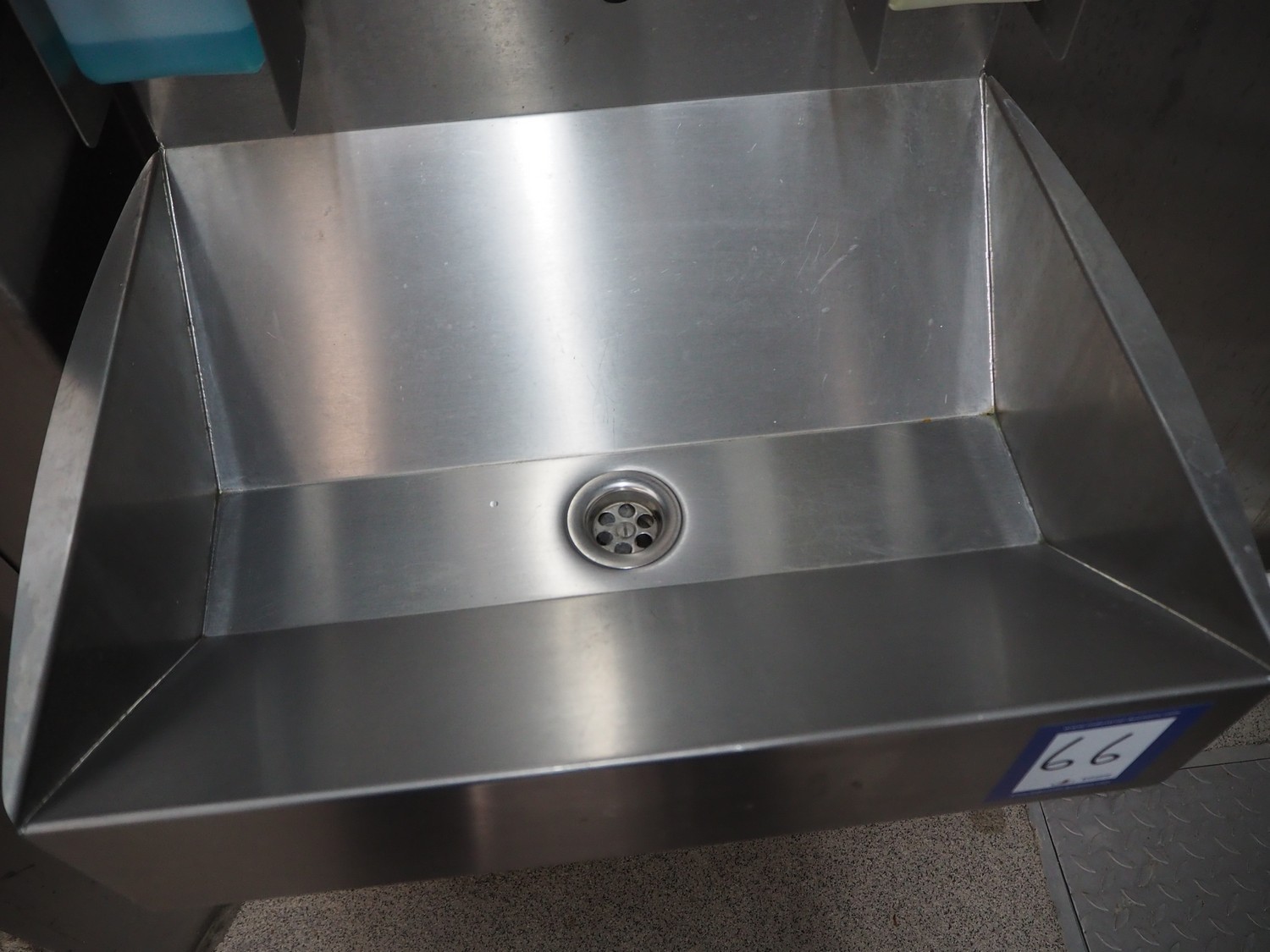Kohlhoff s/s sink with 1 faucet, sensor control, 2 s/s soap dispensers, dimensions sink: 550 mm x 450 mm x 700 mm, Fripa plastic paper dispenser.