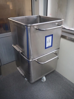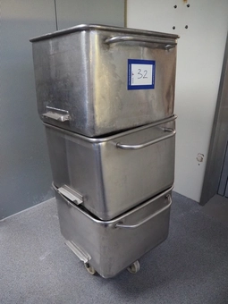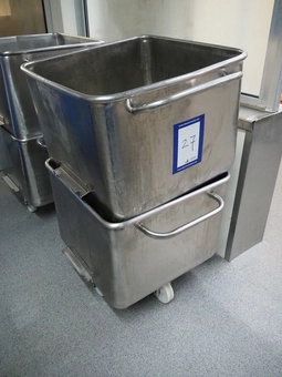 S/s meat bin, volume: 200 liter, dimensions: 760 mm x 760 mm x 700 mm.€ 175,000 bids17/12/2025 15:10