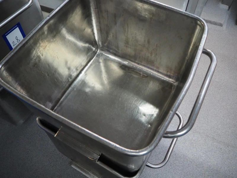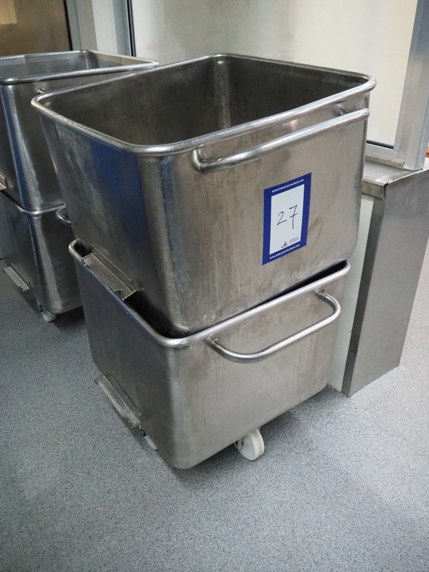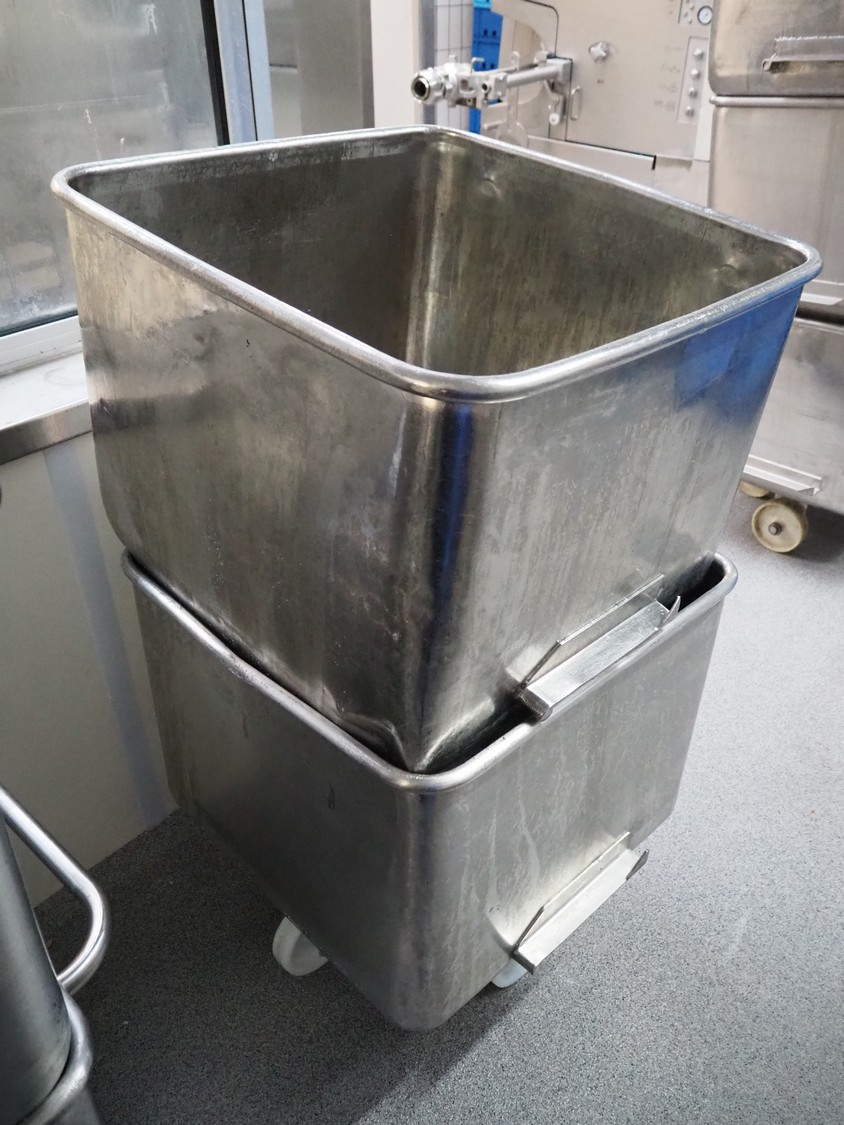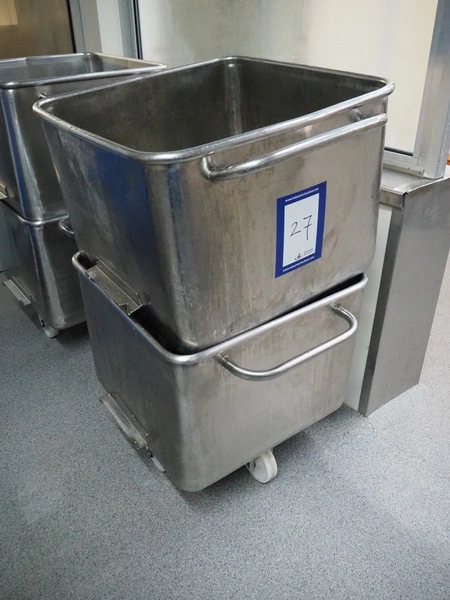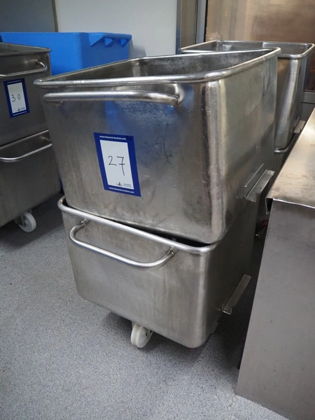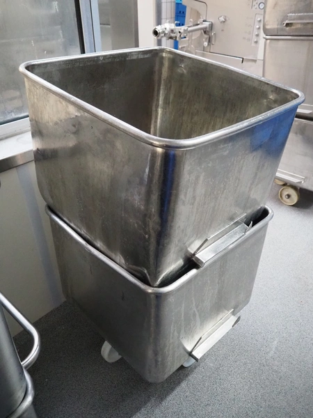 2 s/s meat bins, volume: 200 liter, dimensions: (2x) 760 mm x 760 mm x 700 mm.