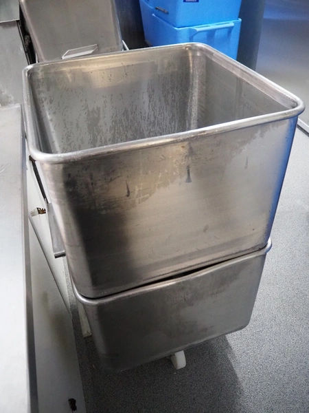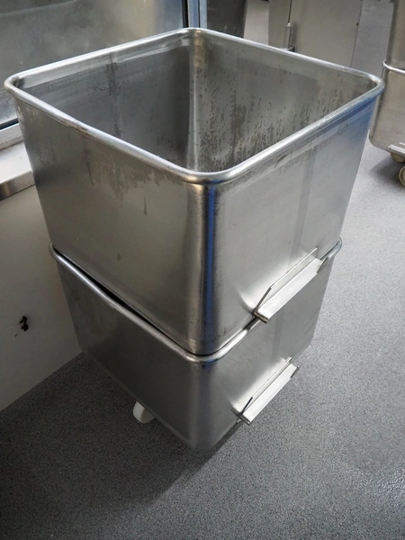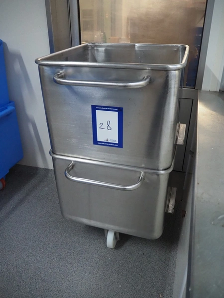 2 s/s meat bins, volume: 200 liter, dimensions: (2x) 760 mm x 760 mm x 700 mm.