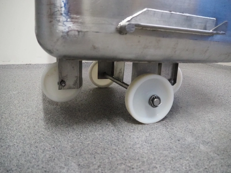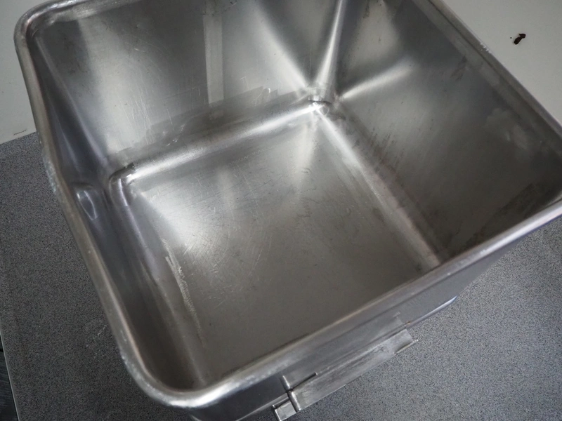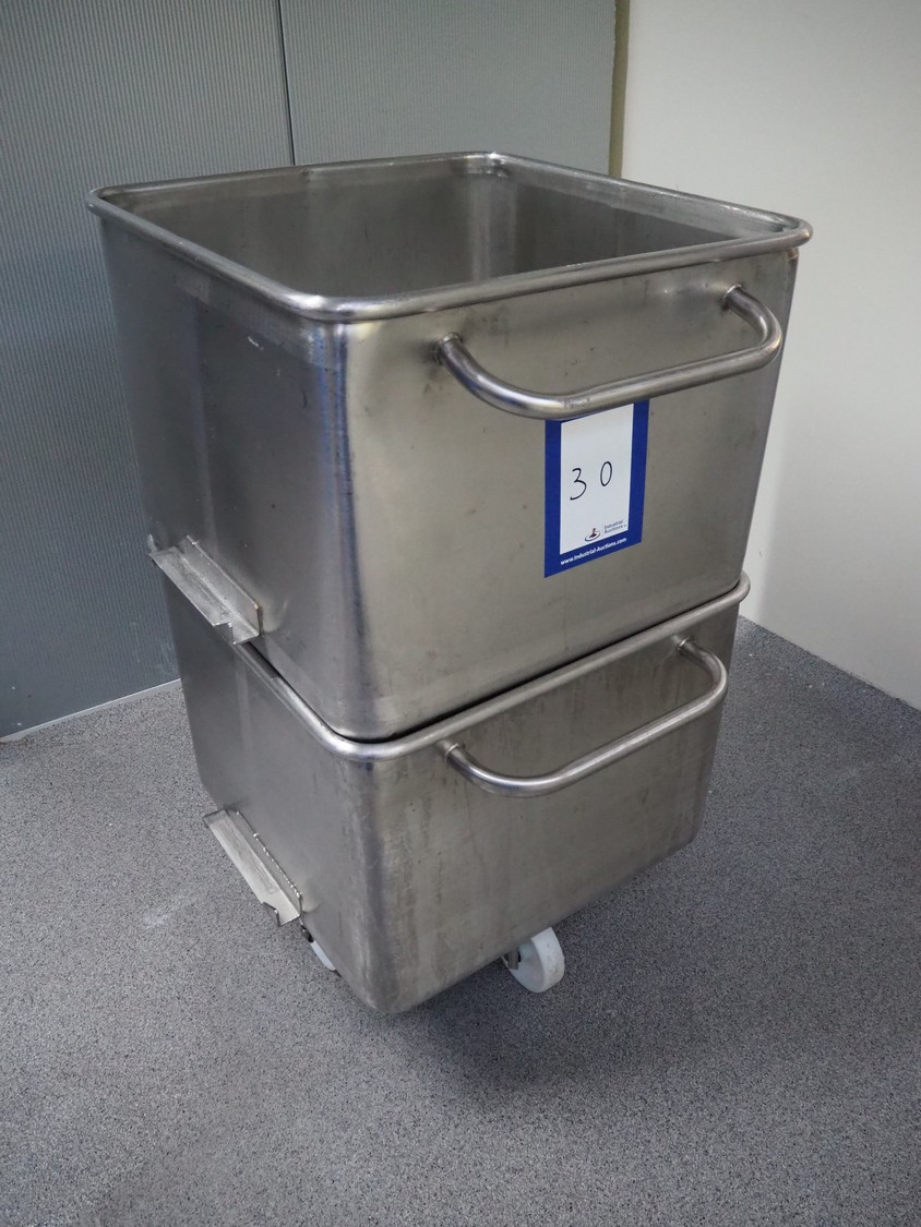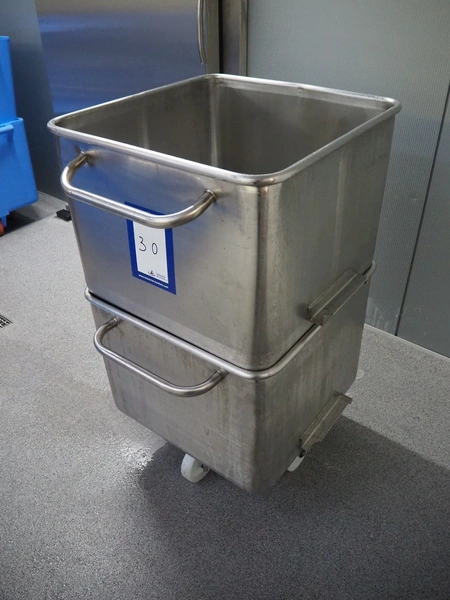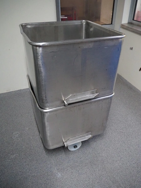 2 s/s meat bins, volume: 200 liter, dimensions: (2x) 760 mm x 760 mm x 700 mm.