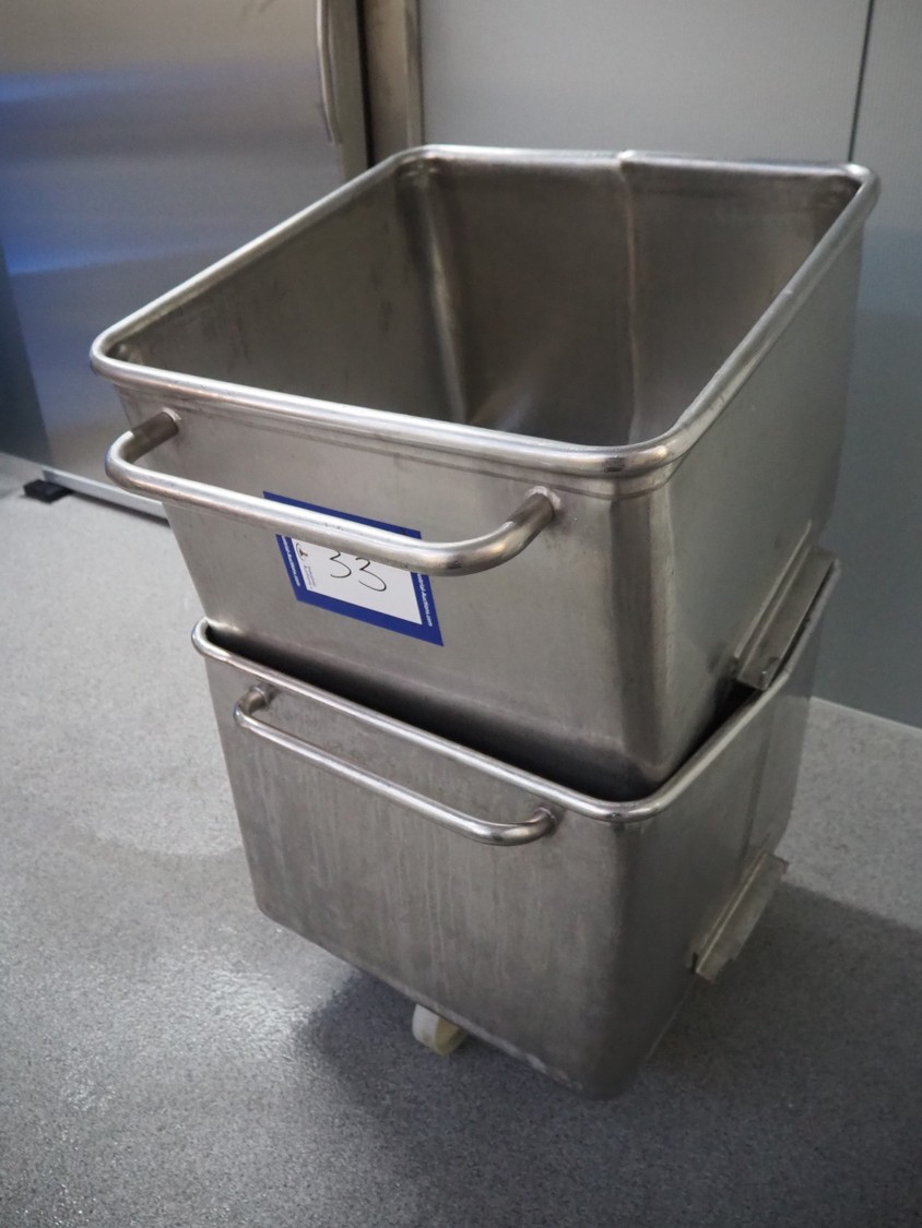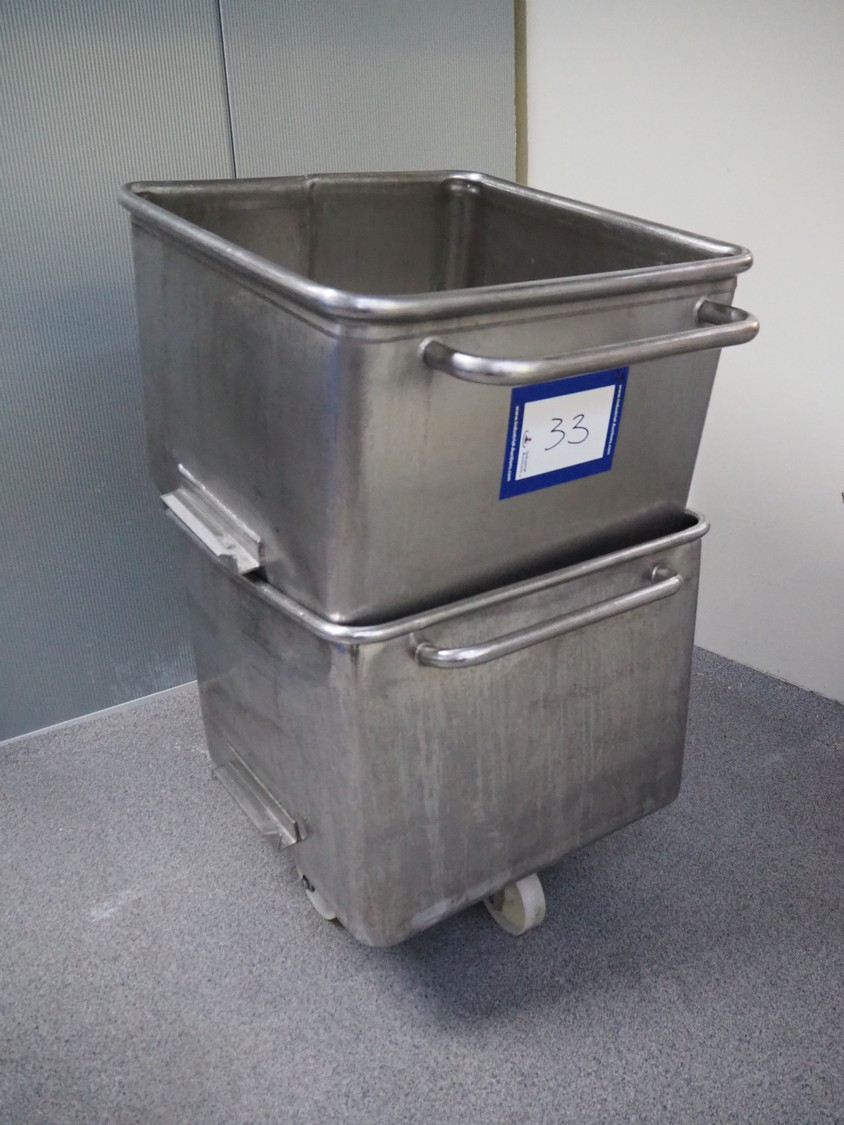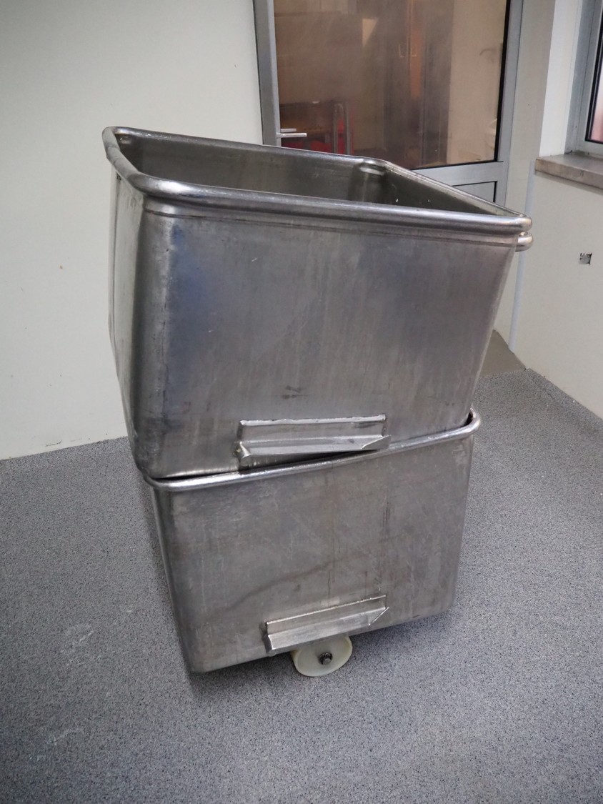 2 s/s meat bins, volume: 200 liter, dimensions: (2x) 760 mm x 760 mm x 700 mm.