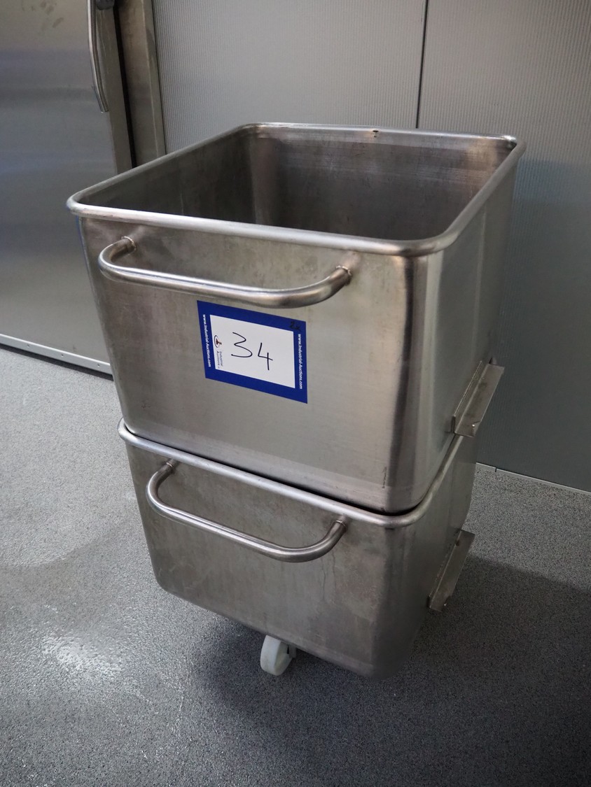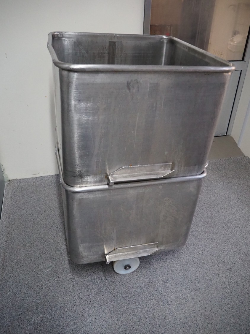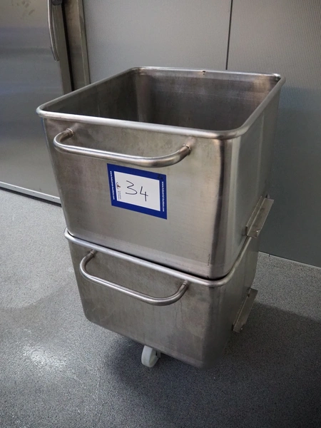 2 s/s meat bins, volume: 200 liter, dimensions: (2x) 760 mm x 760 mm x 700 mm.