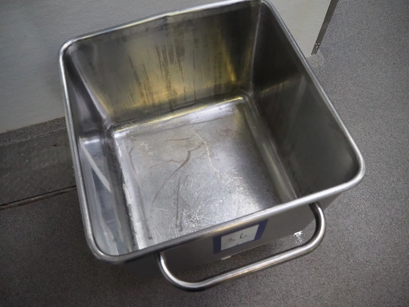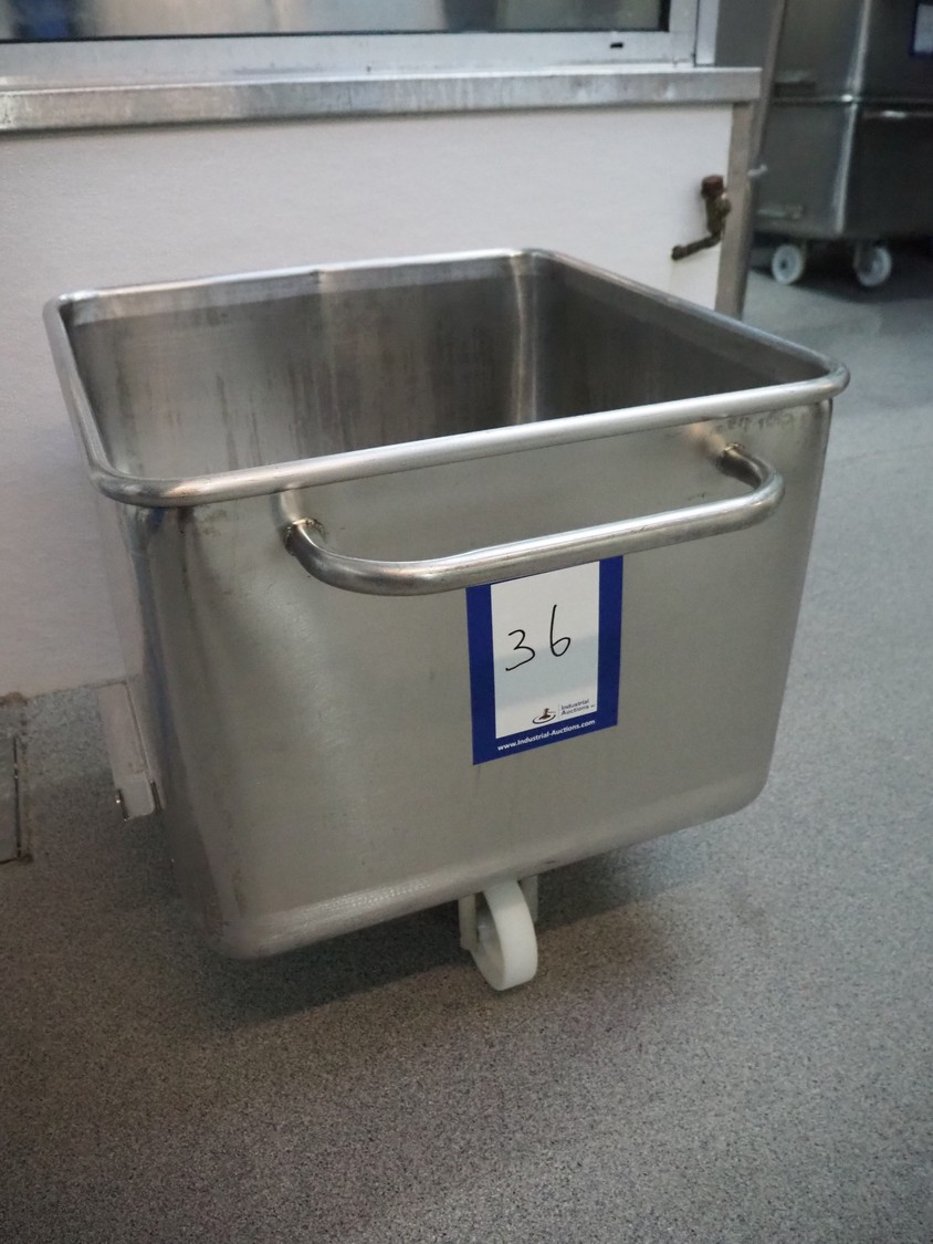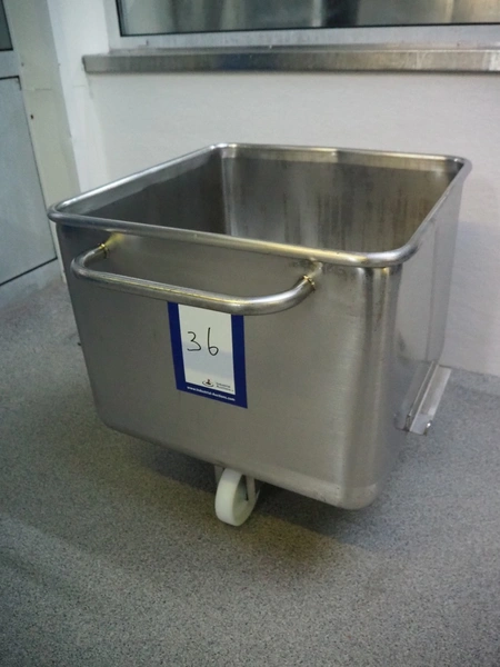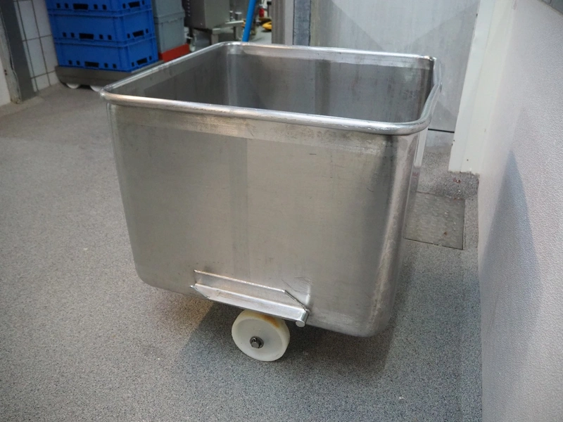 S/s meat bin, volume: 200 liter, dimensions: 760 mm x 760 mm x 700 mm.