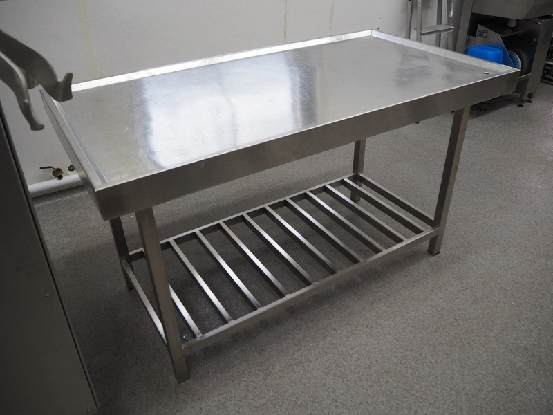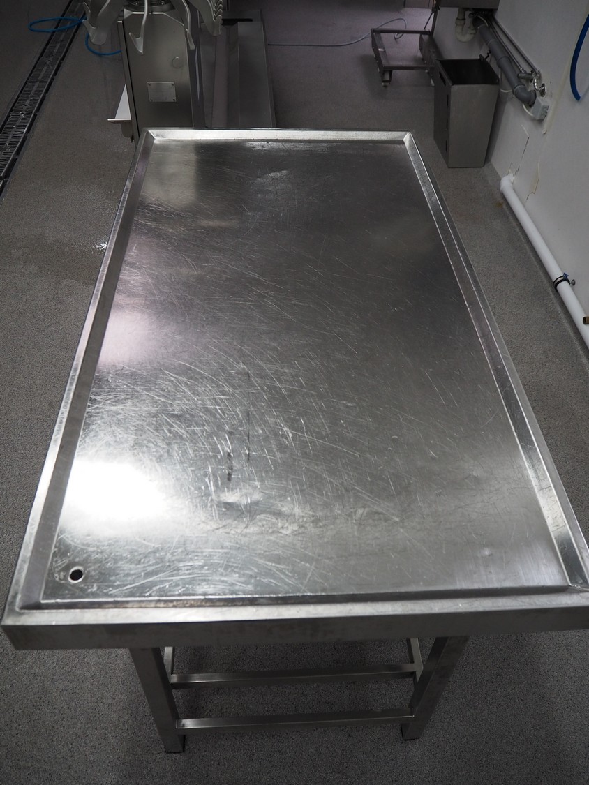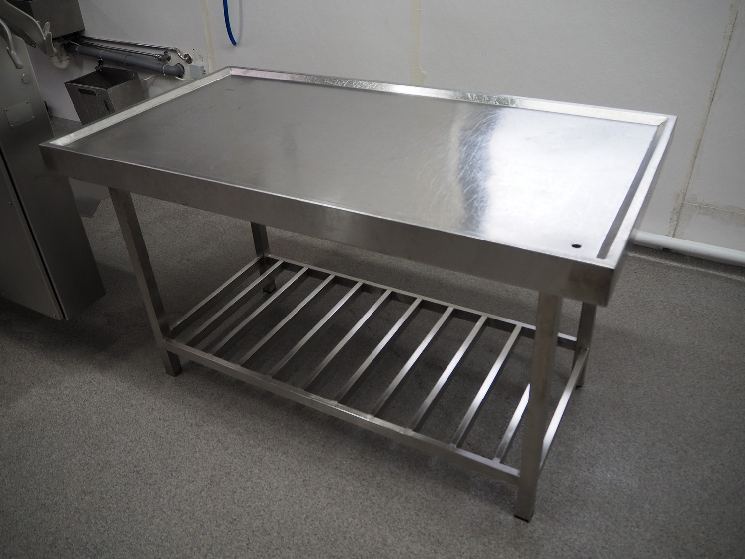 S/s table with drain, dimensions: 1500 mm x 800 mm x 870 mm.