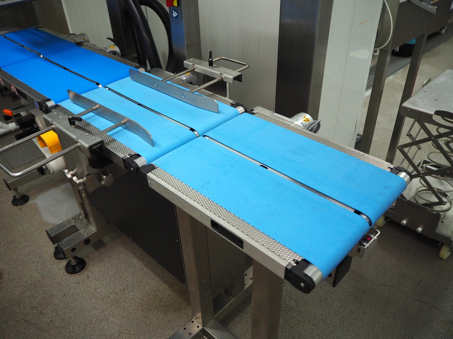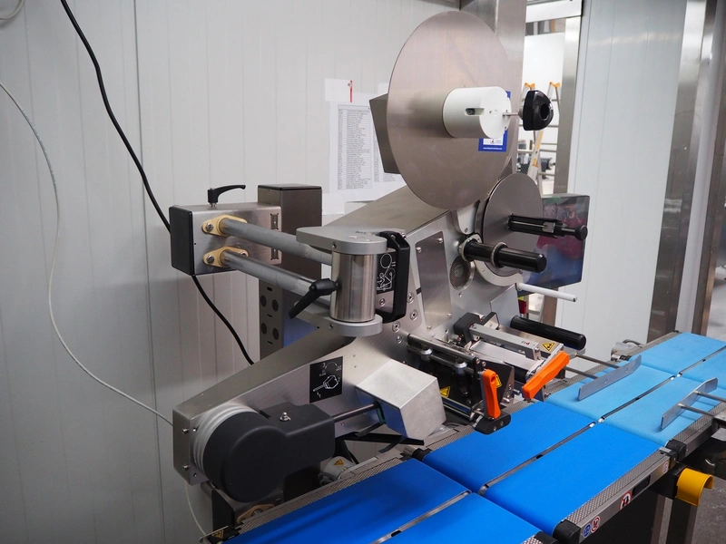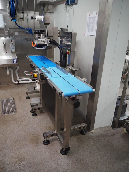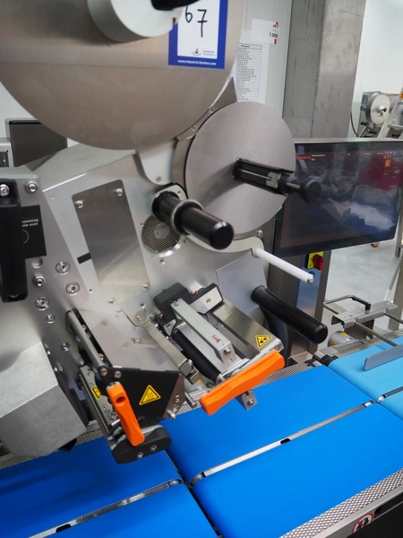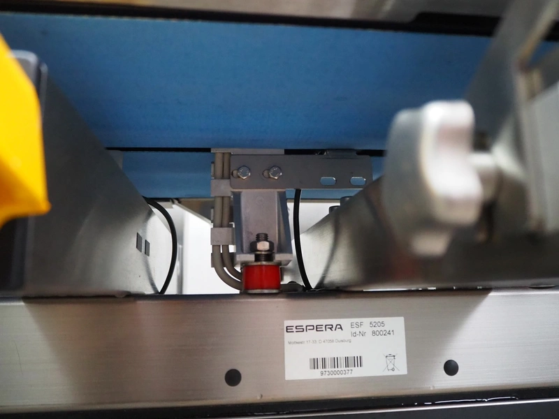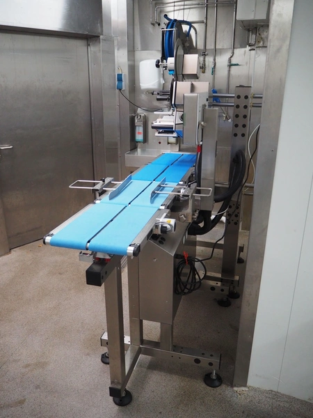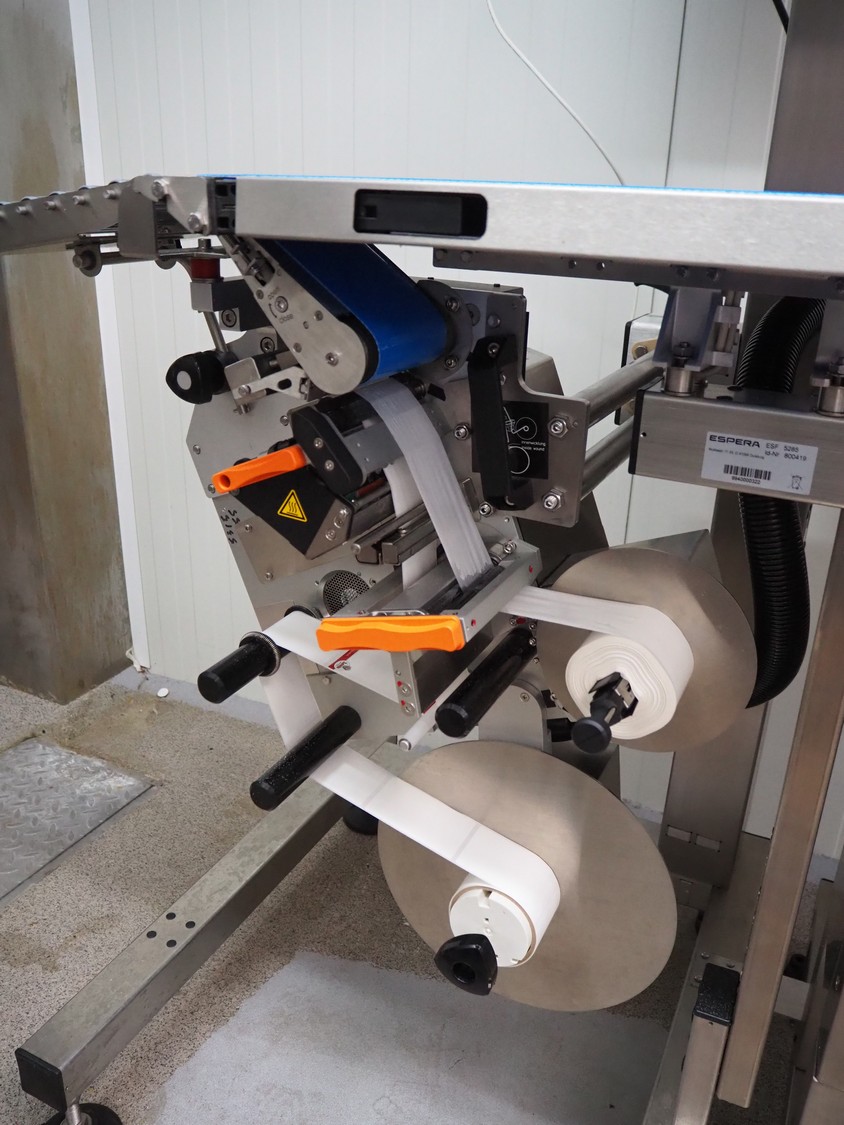 Espera weighing and labelling machine with bottom and top taper, model: ES-B, model checkweigher: ES-E 1000, year of construction: 2025, 110 - 240 V, 50 - 60 Hz, 10 A, maximum: 3 / 6 kg, e: 1/2 gram, plastic belt, belt width: (2x) 145 mm, total dimensions: 2100 mm x 900 mm x 1850 mm.