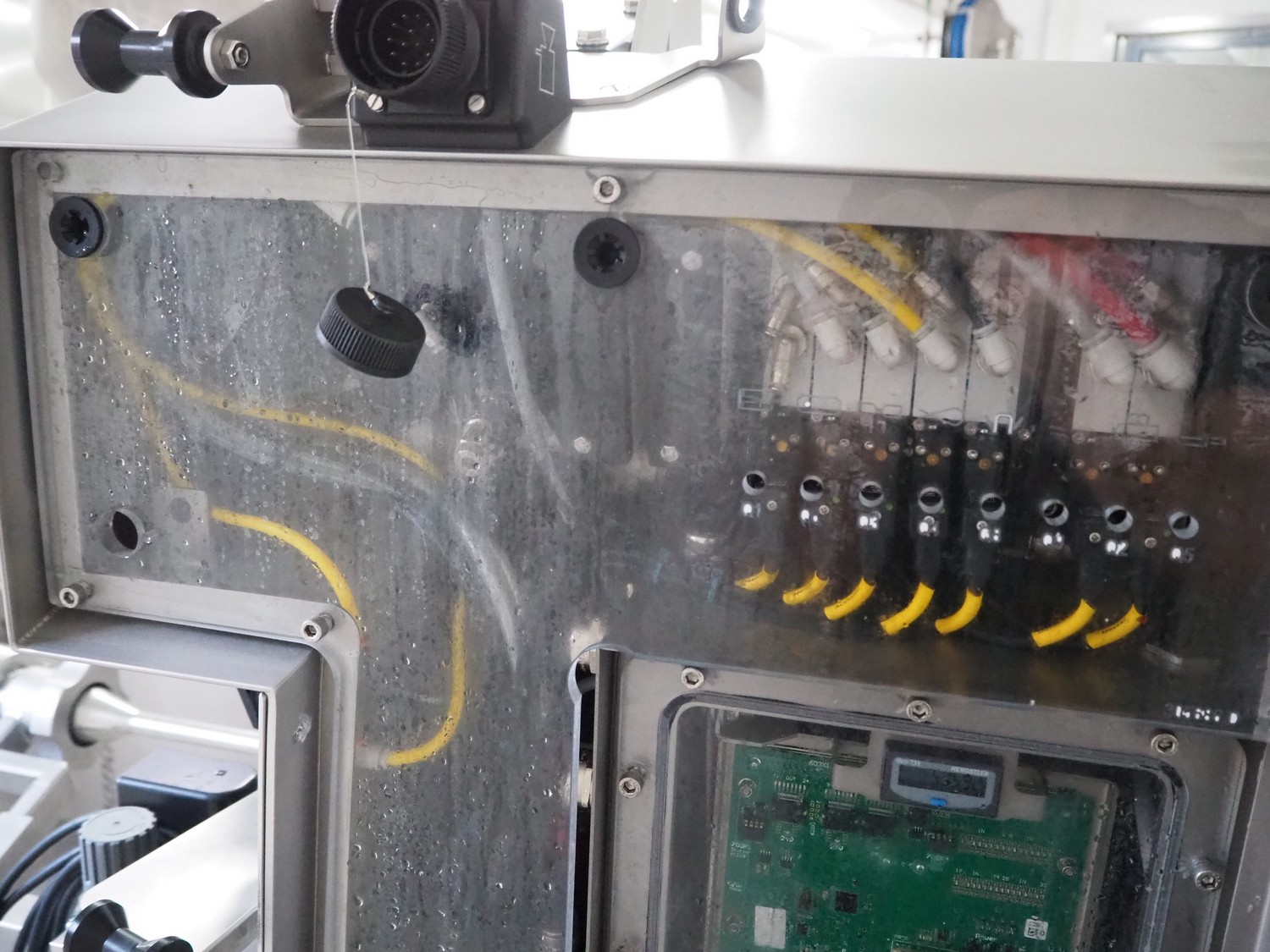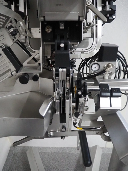 Poly-Clip System GmbH & Co. KG. mobile automatic double clipper, type: PDC A 700, number: 297, year of construction: 2024, 110-250 V, 50/60 Hz, 16 A, 0.8 kW, air pressure: 4 - 6 bar, weight: 164 kg, total dimensions: 1200 mm x 900 mm x 1900 mm.