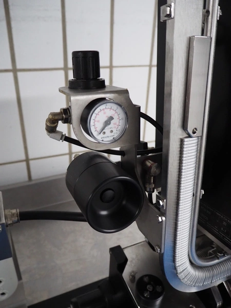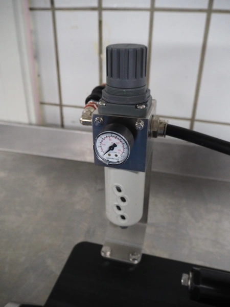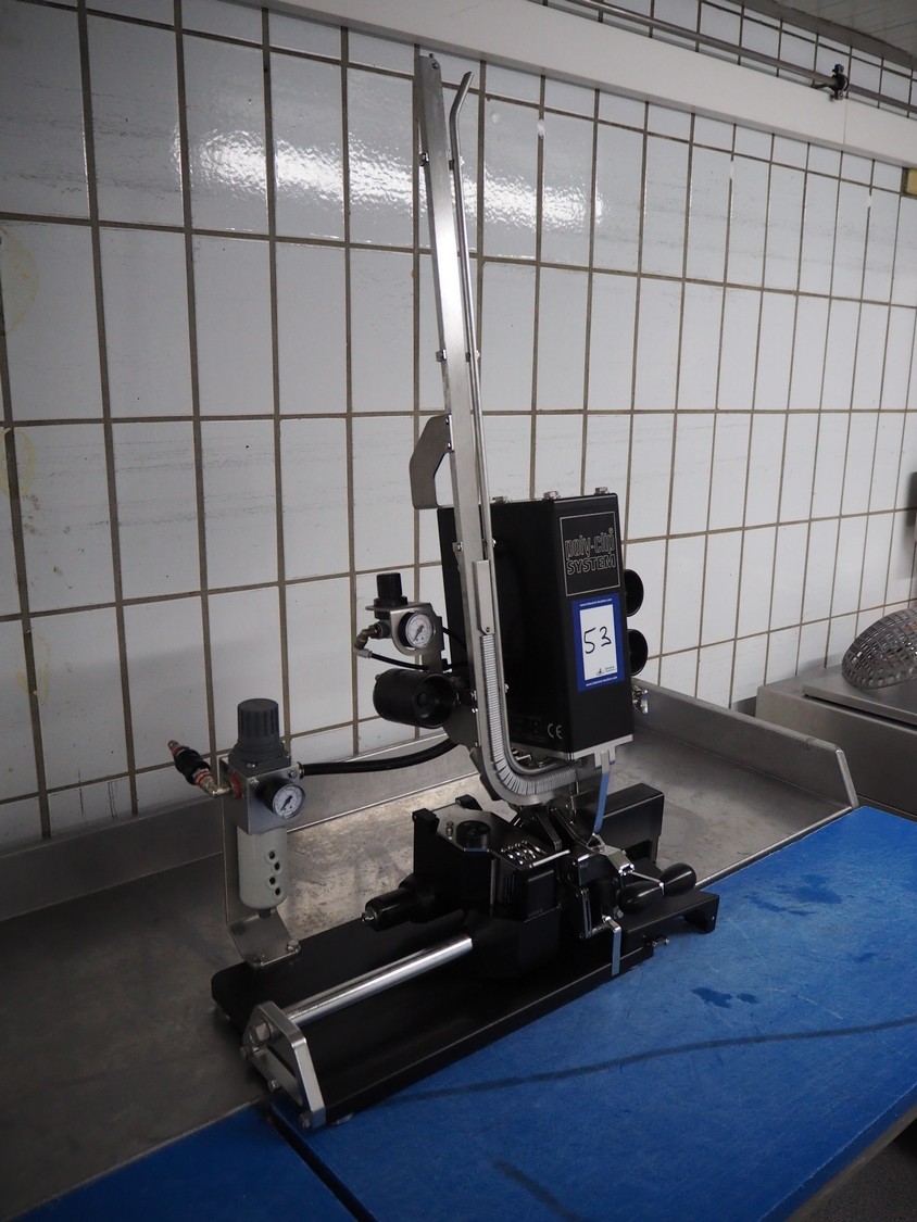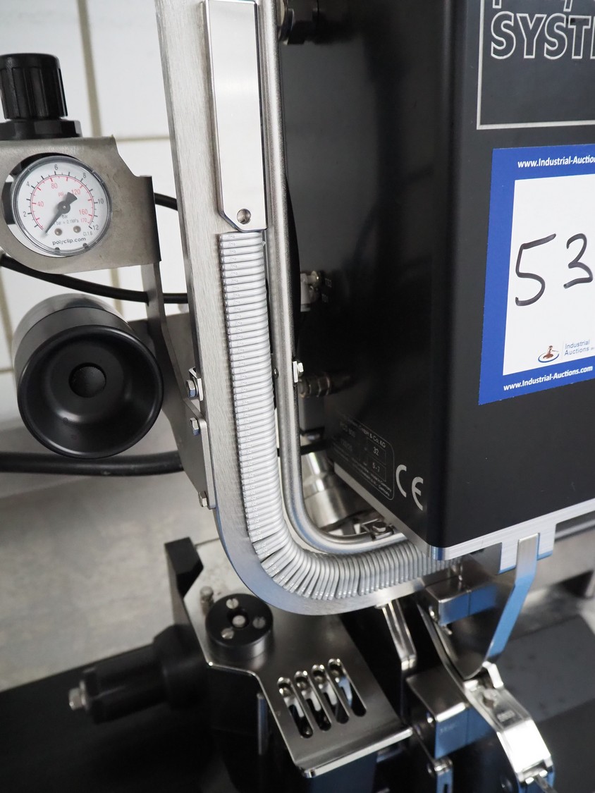 Poly-Clip System GmbH & Co. KG. table model press clipper, type: PCD 800, serial number: 123, year of construction: 2025, air pressure: 5 - 7 bar, weight: 32 kg, dimensions: 750 mm x 450 mm x 1000 mm.