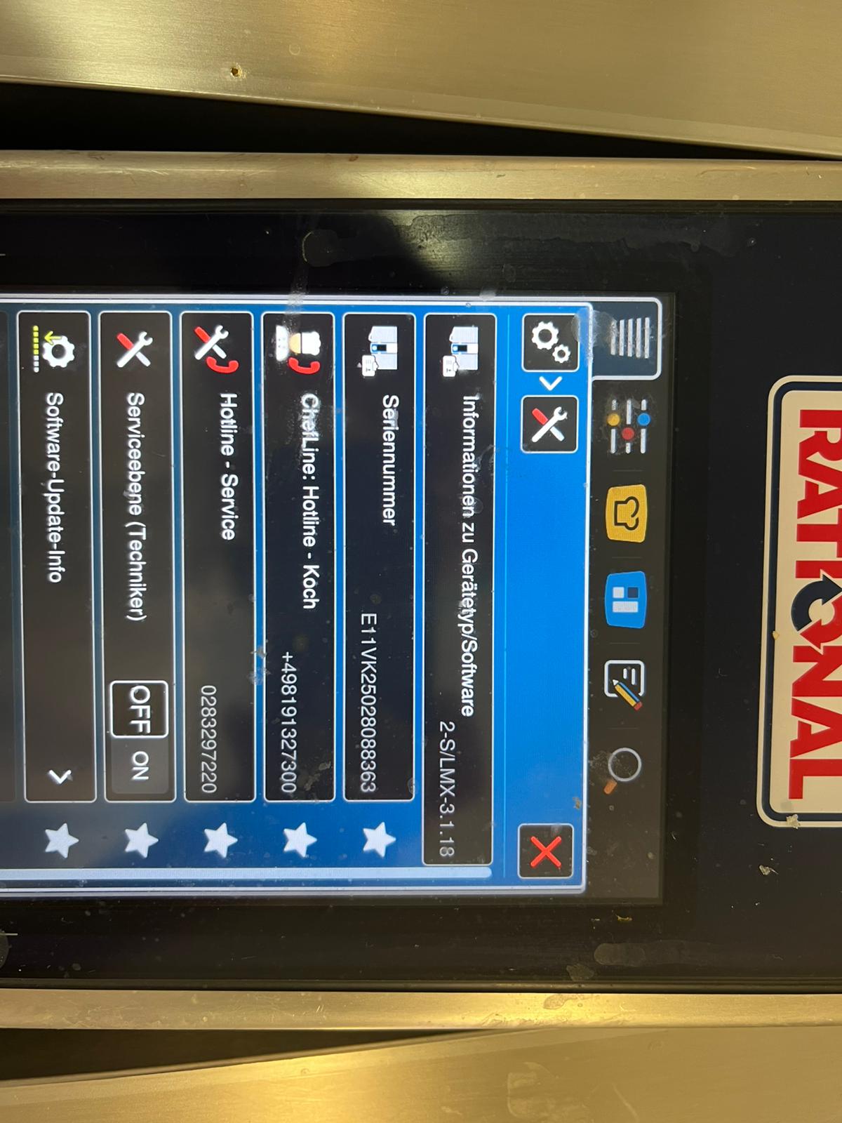 Rational Vario Cooking Center, model: iVarioPro, type / software: 2-S / LMX 3.1.18, serial number: E11VK25028088363, dimensions: 1100 mm x 1000 mm x 1200 mm.