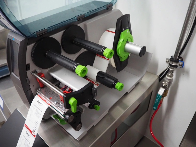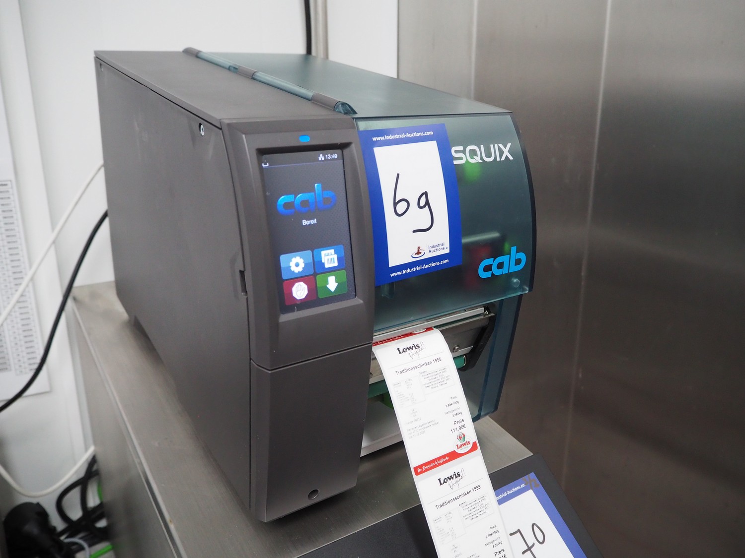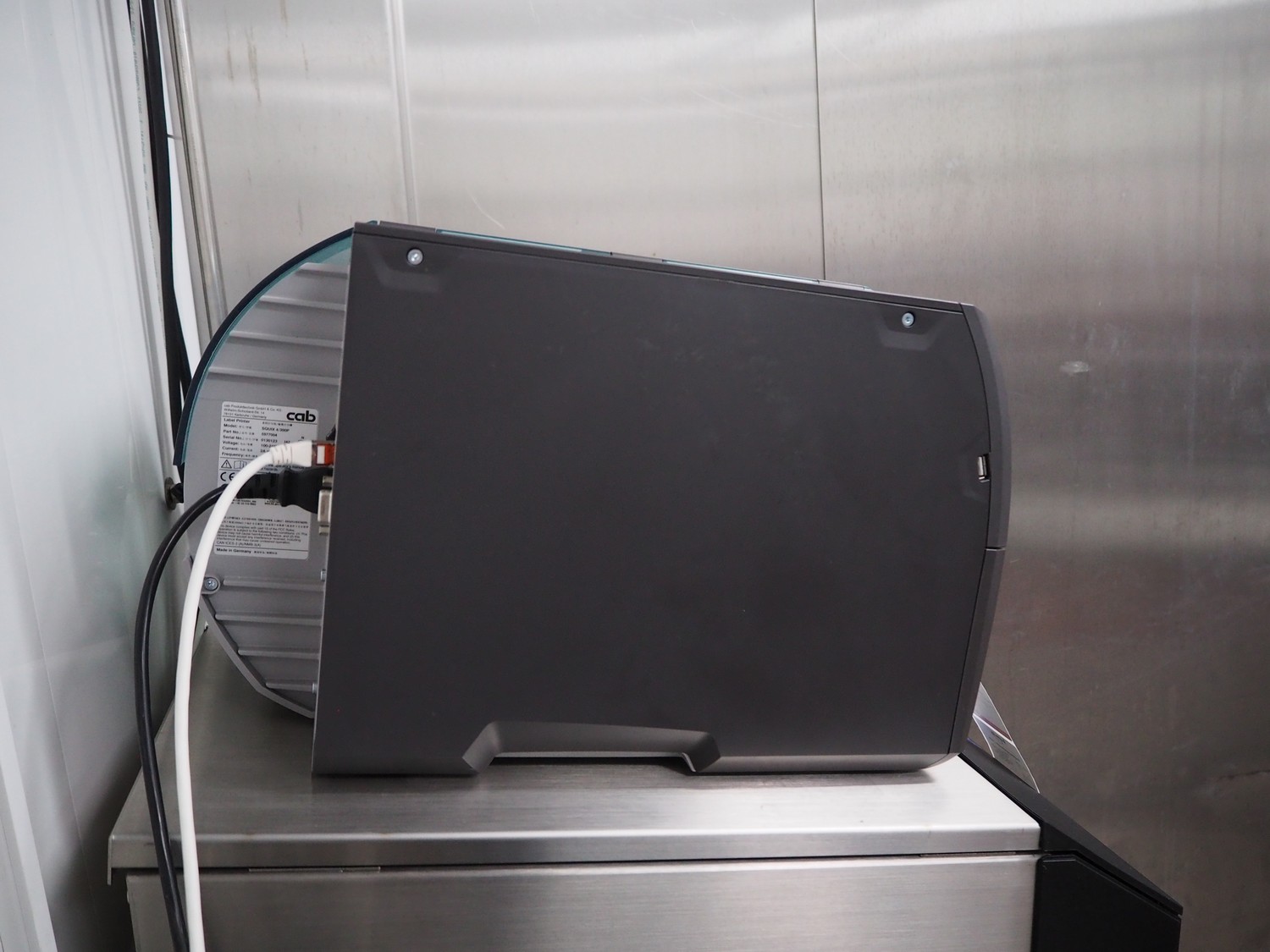 CAB label printer, model: SQUIX 4/300P, serial number: 0130123, 100-240 V, 50-60 Hz, 2 A, dimensions: 250 mm x 380 mm x 300 mm.