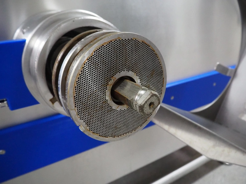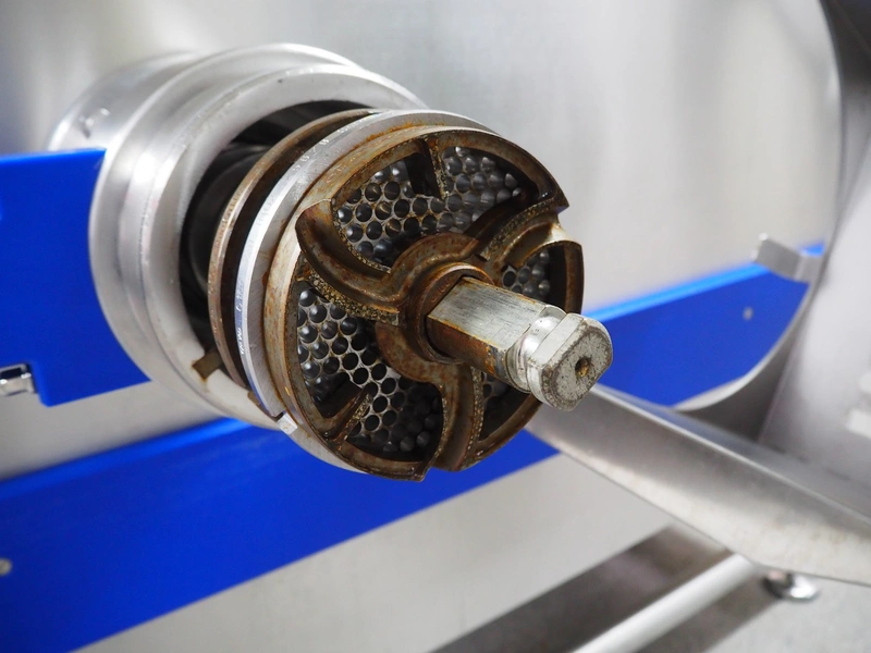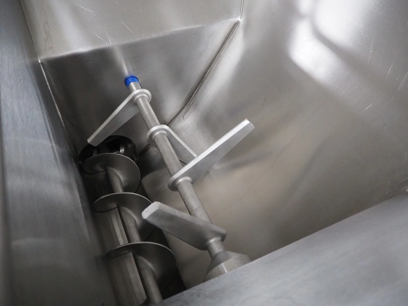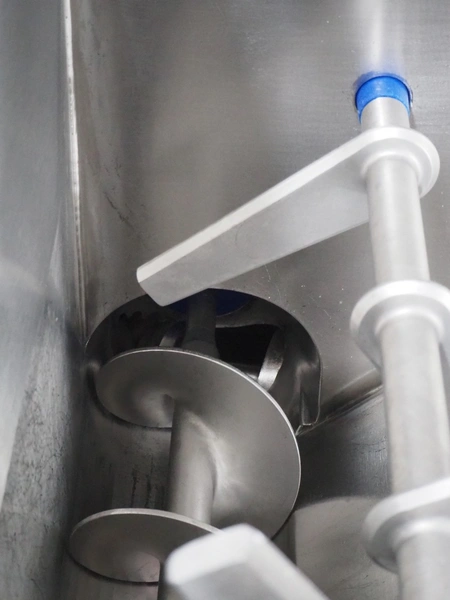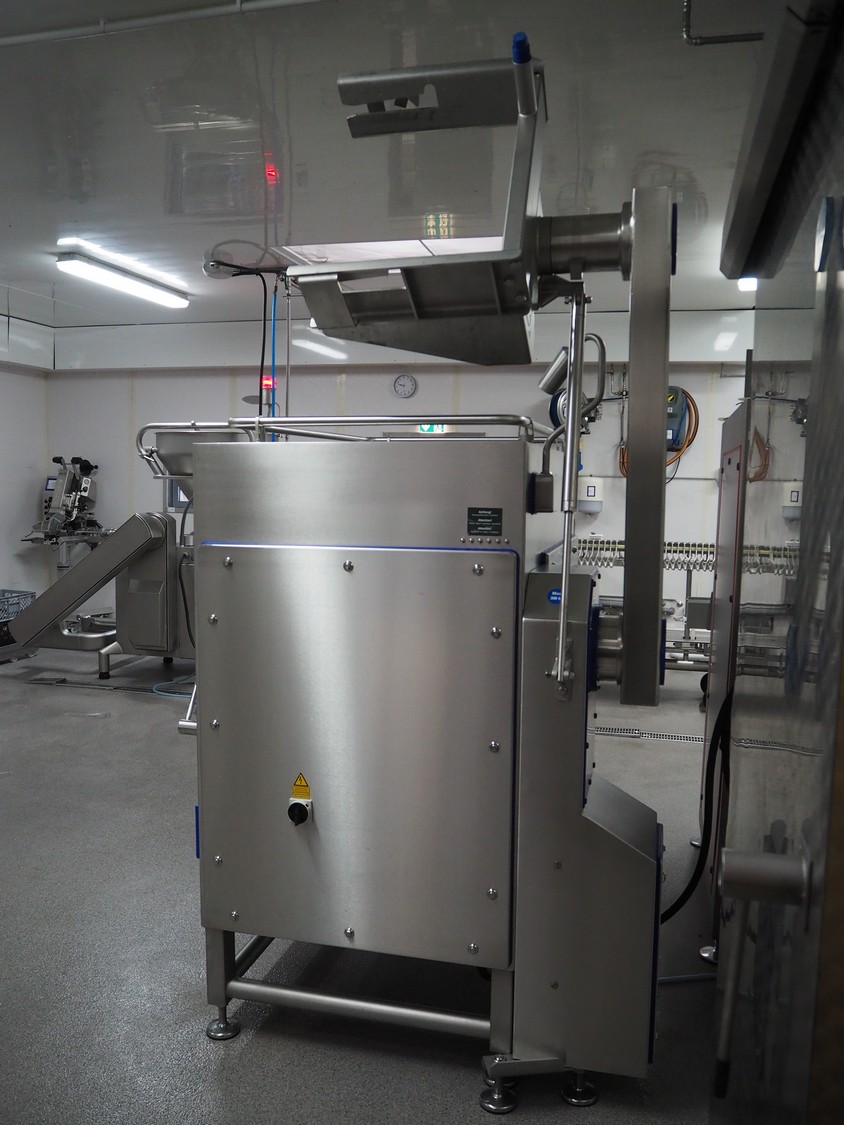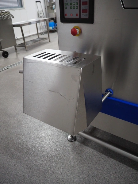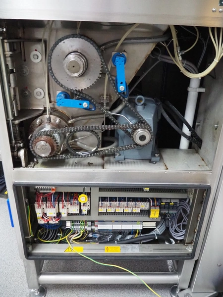 K+G Wetter mixer-grinder with lifter for 200 liter meat bins, machine type: MWW G160-449, machine number: 449/1008, year of construction: 2017, 400 V, 50 Hz, control voltage: 24 DC / 230 AC, rated current: 54 A, 24 kW, plate diameter: 160 mm, hopper capacity: 355 liter, pneumatic sorting device, emptying monitoring, bayonet lock nut, ejecting device for worm and cutting set, mixing arm and shaft for frozen meat, total dimensions: 2700 mm x 2000 mm x 1850 mm. Workshop tested in 2024. Mixer-grinder need to be removed by crane.