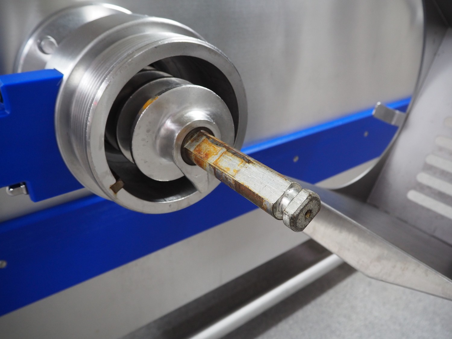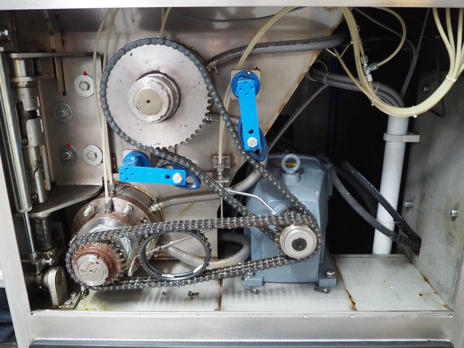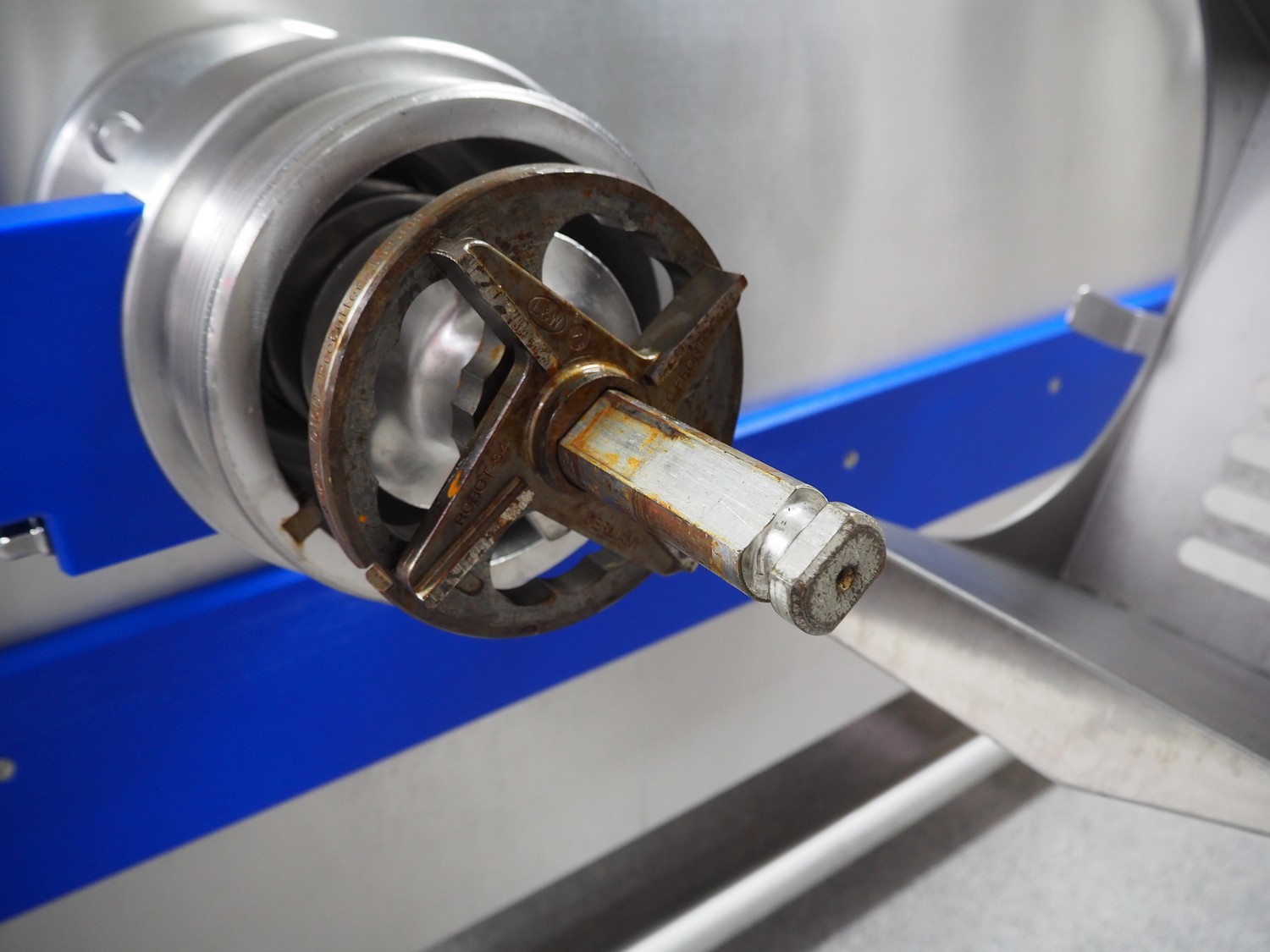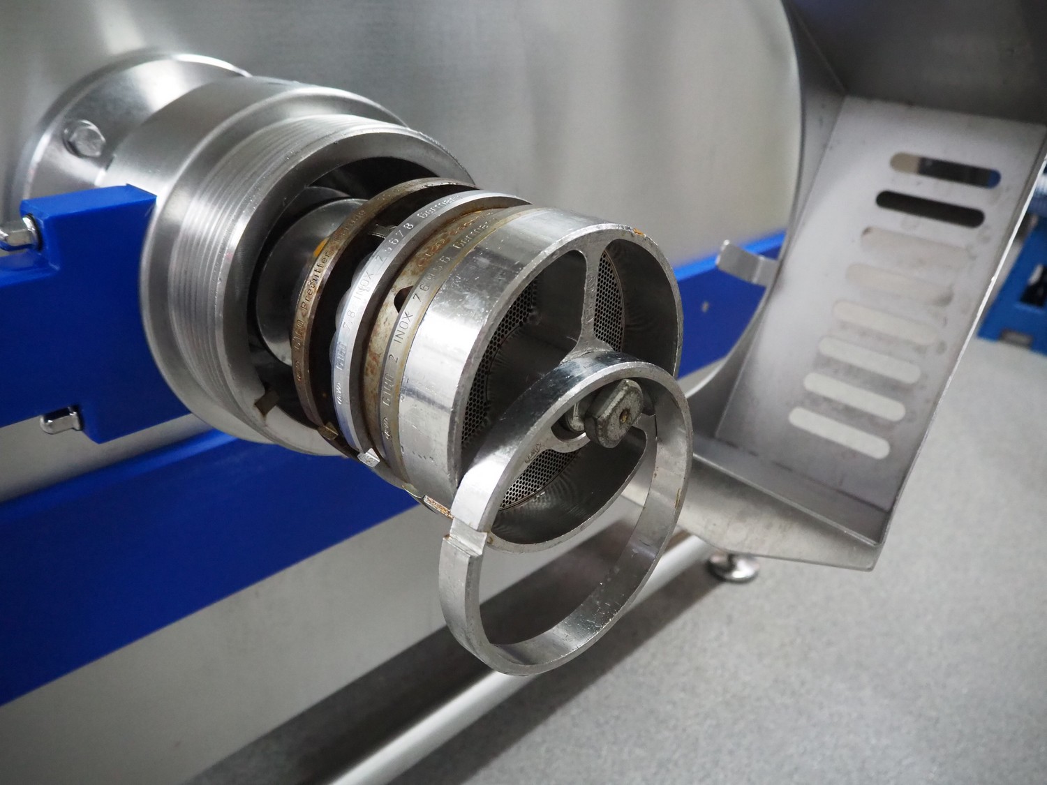 K+G Wetter mixer-grinder with lifter for 200 liter meat bins, machine type: MWW G160-449, machine number: 449/1008, year of construction: 2017, 400 V, 50 Hz, control voltage: 24 DC / 230 AC, rated current: 54 A, 24 kW, plate diameter: 160 mm, hopper capacity: 355 liter, pneumatic sorting device, emptying monitoring, bayonet lock nut, ejecting device for worm and cutting set, mixing arm and shaft for frozen meat, total dimensions: 2700 mm x 2000 mm x 1850 mm. Workshop tested in 2024. Mixer-grinder need to be removed by crane.