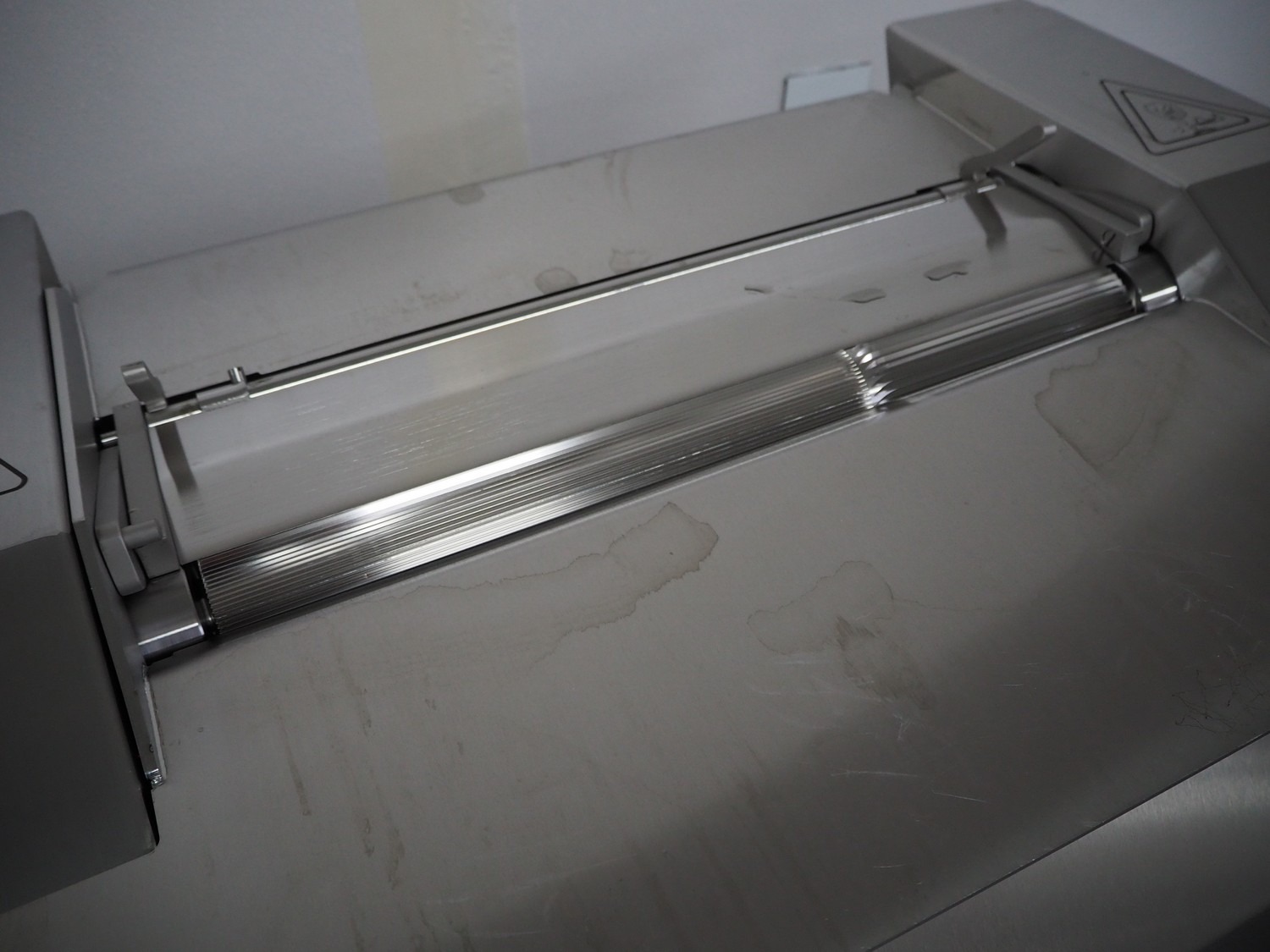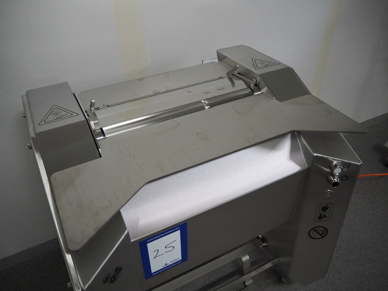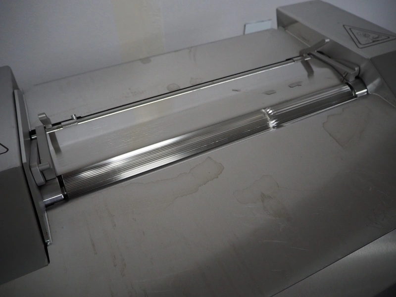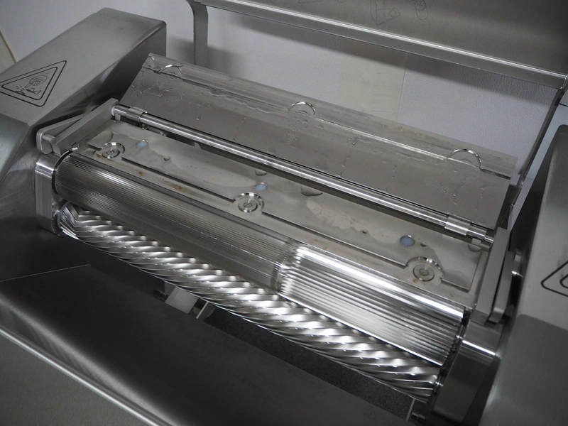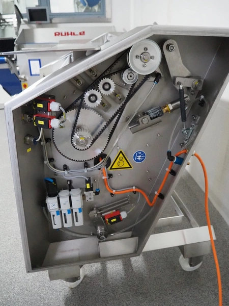 Maja-Maschinenfabrik mobile skinning machine, type: EVMsplit 5006, serial number: M-58226, year of construction: 2025, 400 V, 3 Ph, 50 Hz, 2.24 A, 0.55 kW, 6 bar, 280 liter per minute, weight: 200 kg, working width: 540 mm, foot control, total dimensions: 1000 mm x 750 mm x 1050 mm.