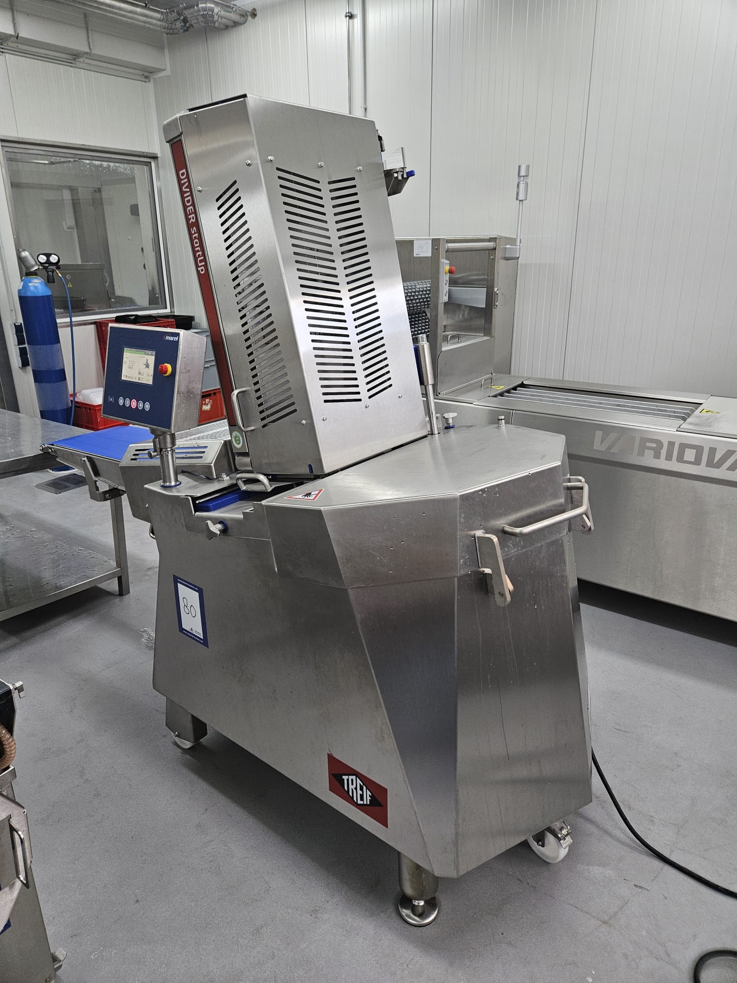 Marel TREIF GmbH slicer, model: K207 / DIVIDER startup, machine number: 750004.260206.155201, year of construction: 2025, 380-480 V, 3 Ph, 50/60 Hz, control voltage: 24 V, rated current: 4 A, supply line fuse: 16 A, rated power: 2.8 / 3.81 kW, weight: 560 kg, plastic belt, belt width: 360 mm, total dimensions: 2300 mm x 1100 mm x 2000 mm.