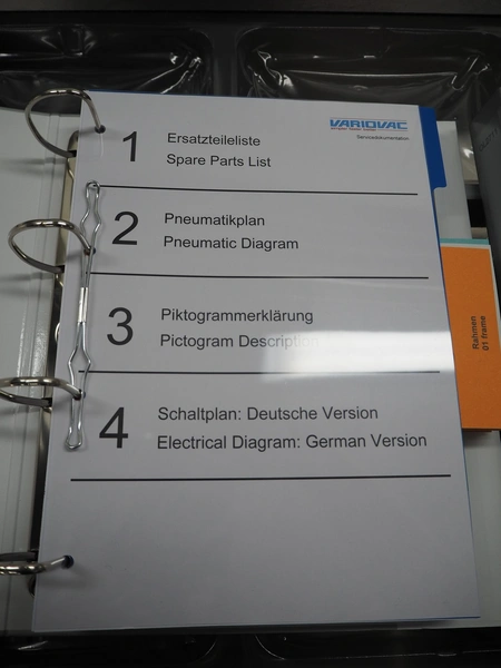 Variovac thermoformer, machine type: OPTIMUS, number: OL2711, year of construction: 2025, 230/400 V, 50 Hz, nominal current: 20 A, nominal power: 12 kW, compressed air minimum: 6 bar, film width: 460 mm, index: 220 mm, thermofoming depth: 100 mm, outfeed belt, belt width: 425 mm, Busch vacuum pump, type: RA0100 F 403 TDXZ, year of construction: 2024, capacity: 120 m³ per hour, total dimensions: 3700 mm x 1200 mm x 2200 mm. Including various parts. For more information about the dyes see below drawings: