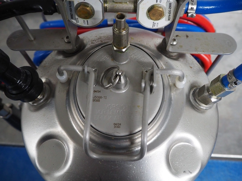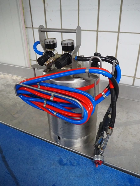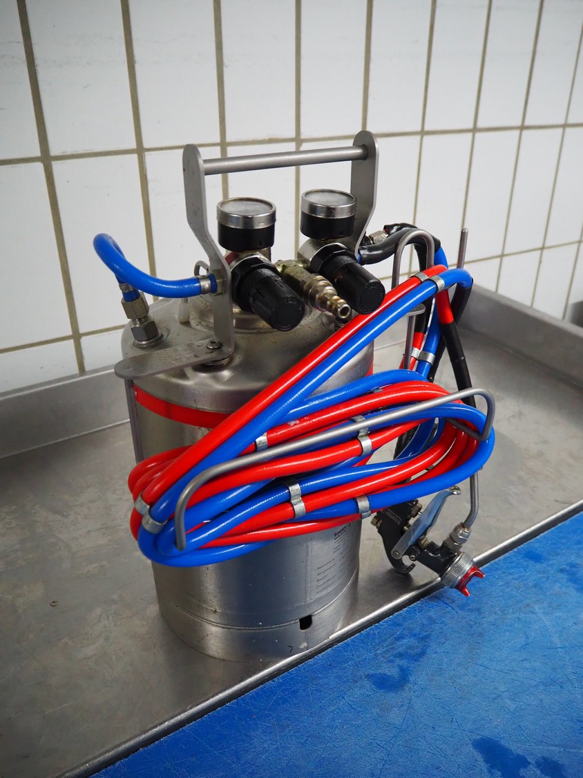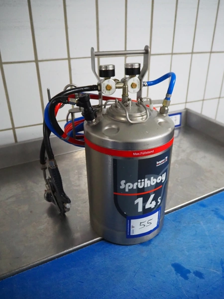 Boyens Backservice spraying unit for spraying release agents or emulsions, model: Sprühboy 14S, container serial number: 2401285, year of construction: 2024, capacity: 10 liter, dimensions: 350 mm x 300 mm x 500 mm.
