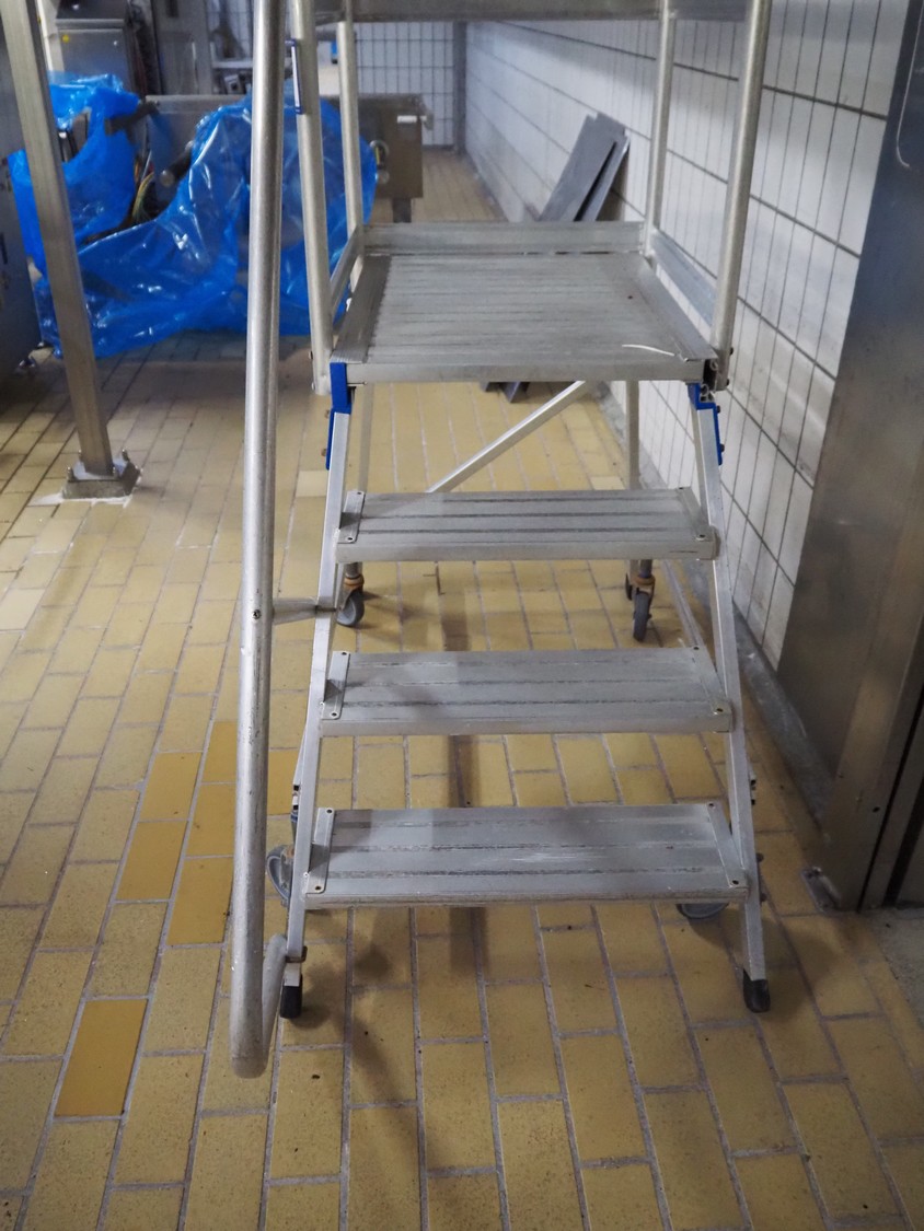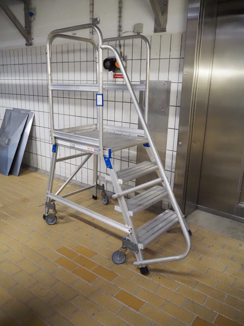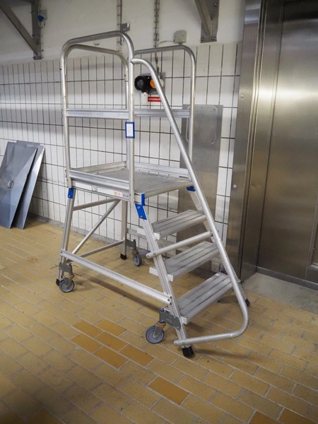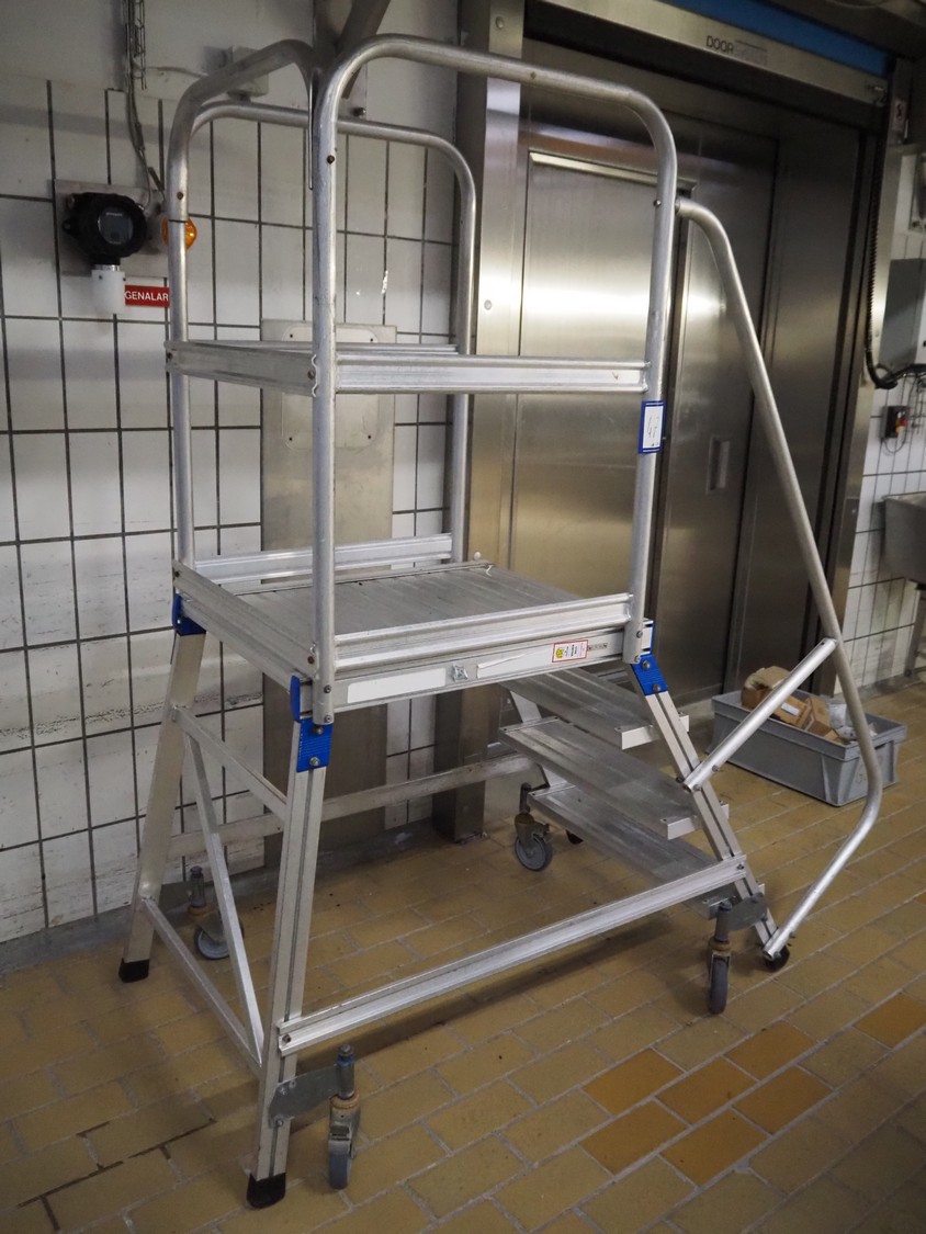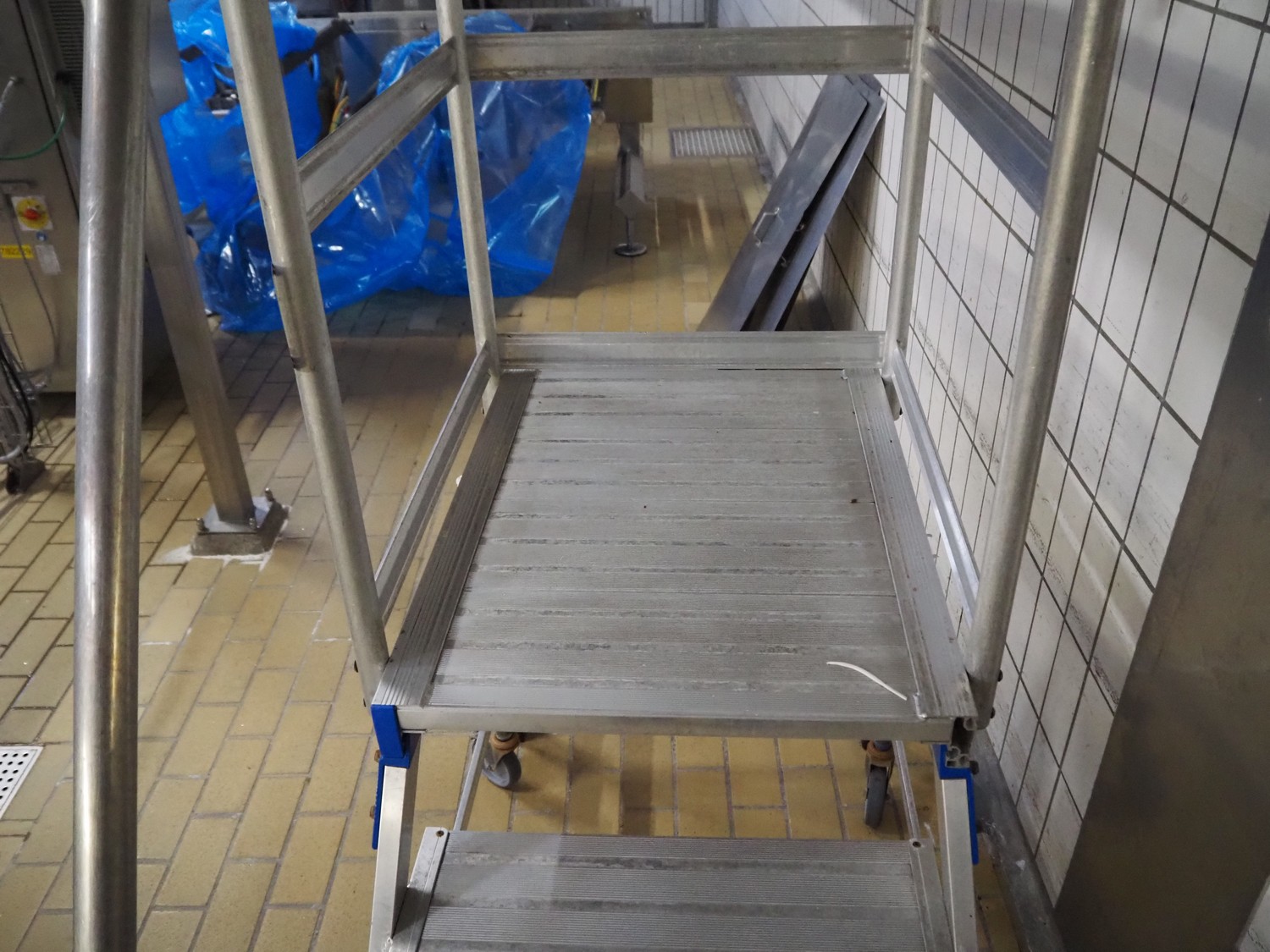 Mobile aluminium working platform, working height: 1000 mm, total dimensions: 1600 mm x 800 mm x 1950 mm.