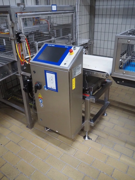 Mettler-Toledo Garvens GmbH checkweigher, type: C 2351, serial number: 1443459650010, year of construction: 2021, 230 V, 50-60 Hz, maximum weight: 15000 g, minimum weight: 9600 g, e=d= 5 g, T=-13500 g, plastic belt, belt width: 490 mm, total dimensions: 850 mm x 900 mm x 1200 mm.