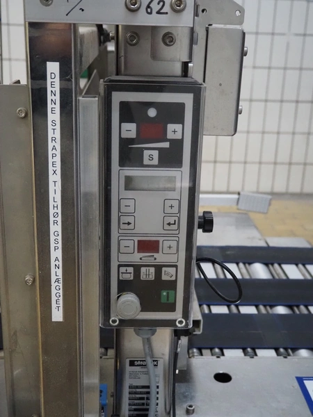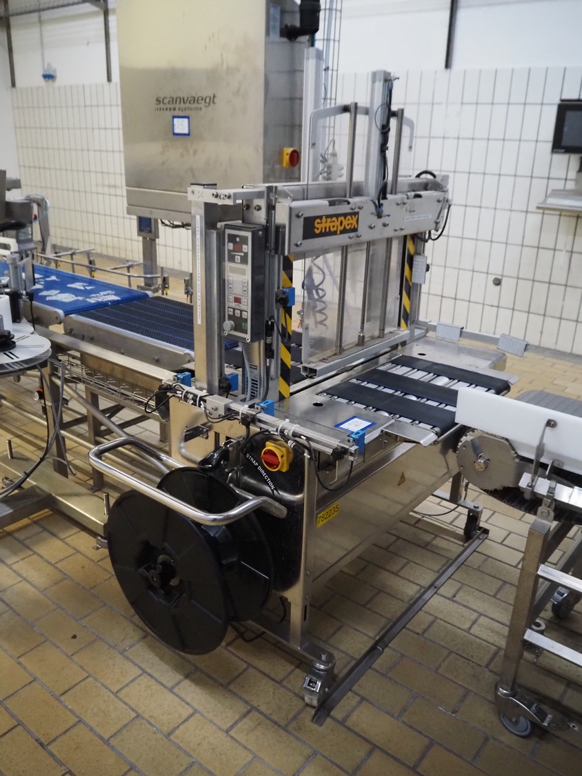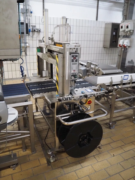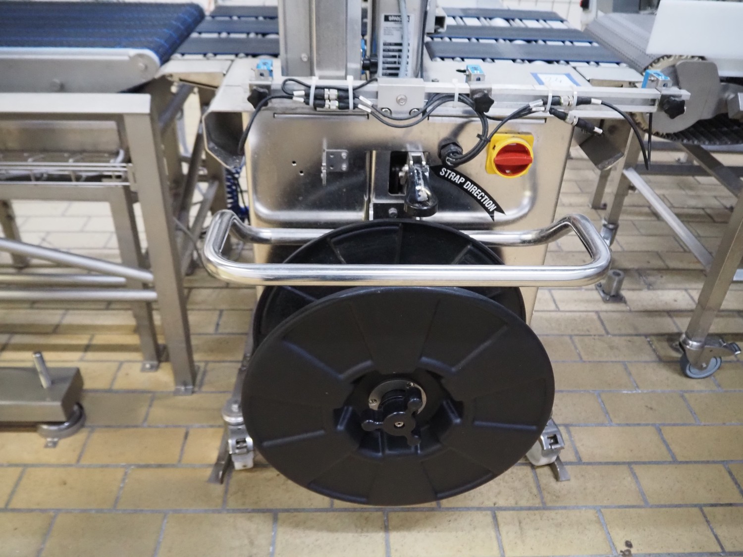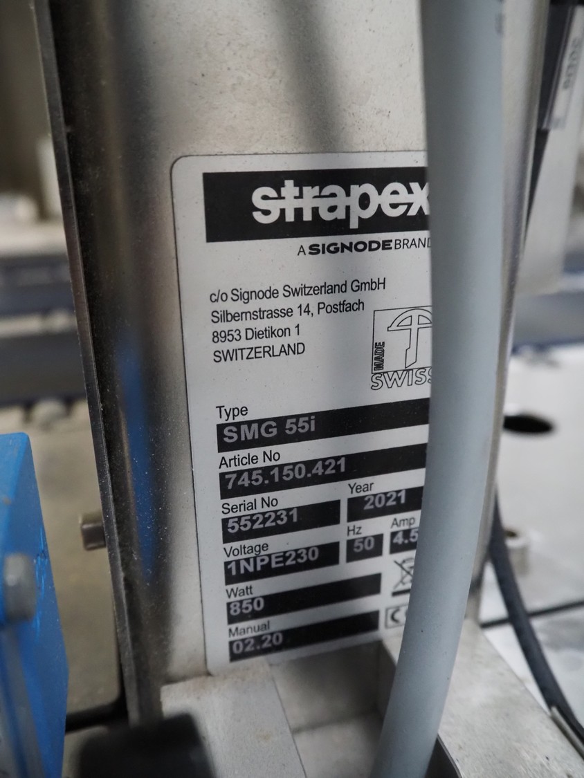 Strapex mobile strapping machine, type: SMG 55i, serial number: 552231, year of construction: 2021, 230 V, 1 Ph, 50 Hz, 4.5 A, 850 W, dimensions: 1400 mm x 900 mm x 1700 mm.