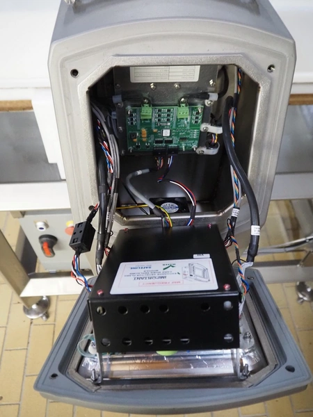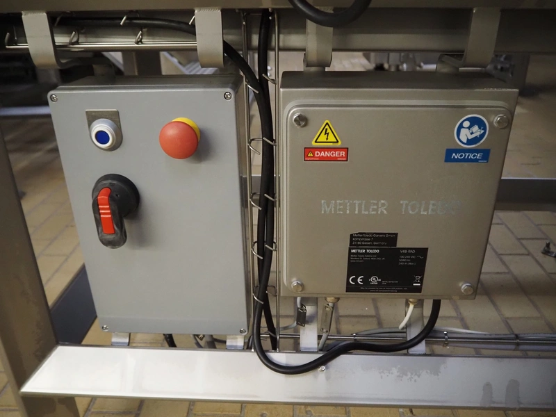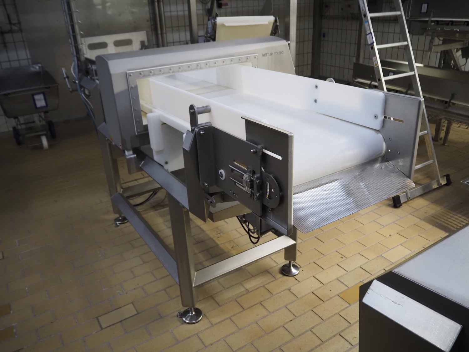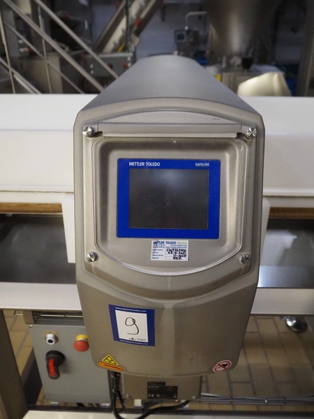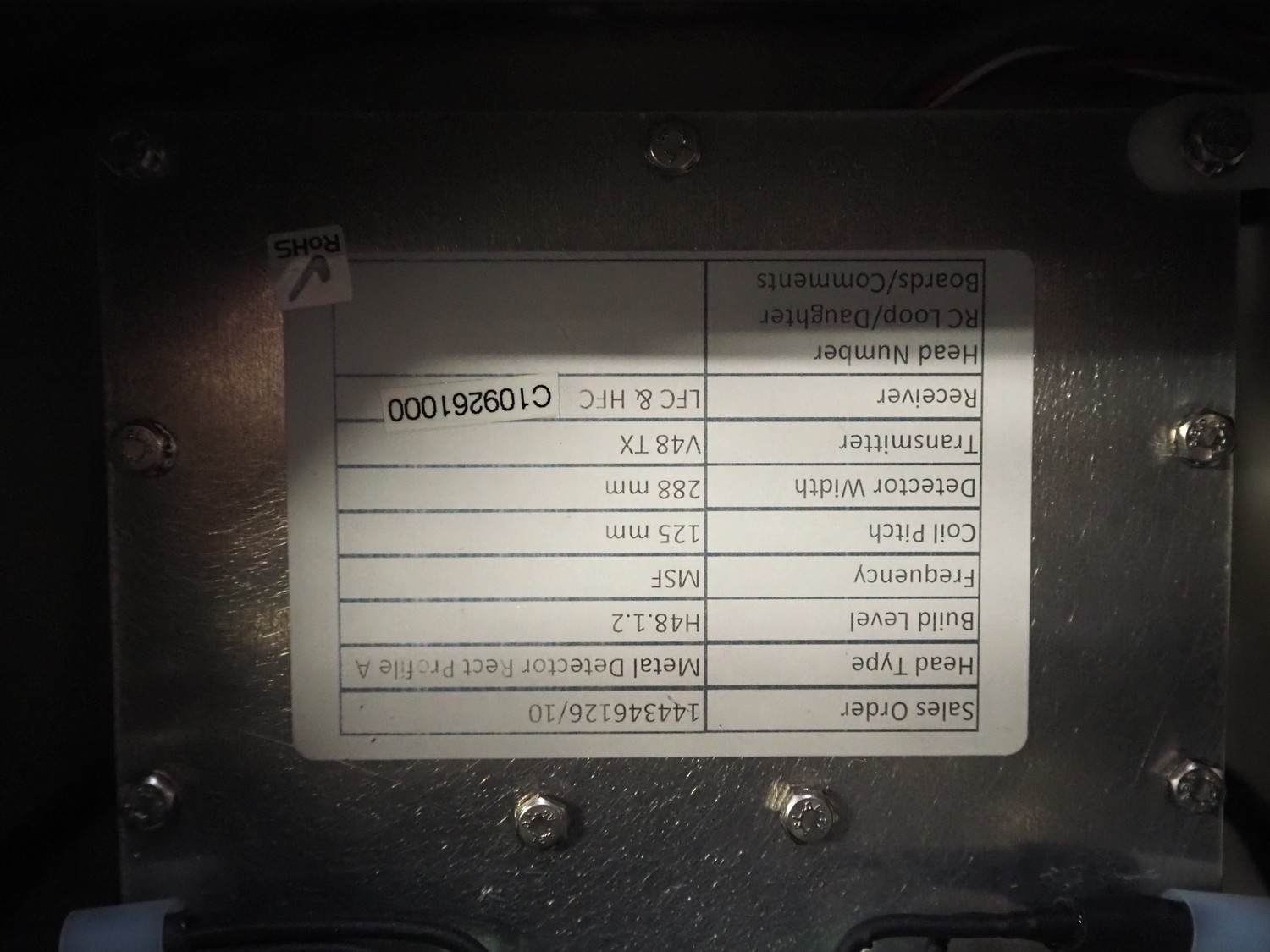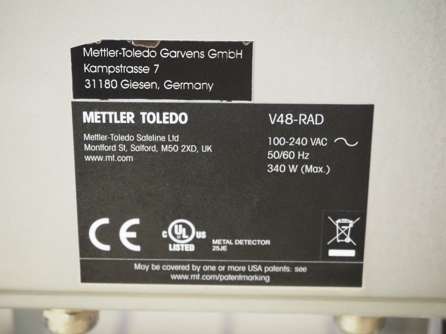 Mettler-Toledo Safeline Ltd metal detector, model: V48-RAD, serial number: C102261000, last service: 07-11-2023, 100-240 V, 50/60 Hz, 340 W, plastic belt, belt width: 560 mm, clearance: 580 mm x 170 mm, total dimensions: 3000 mm x 1300 mm x 1500 mm.