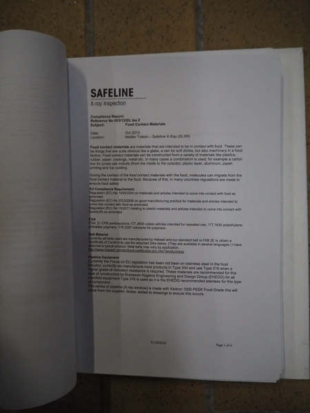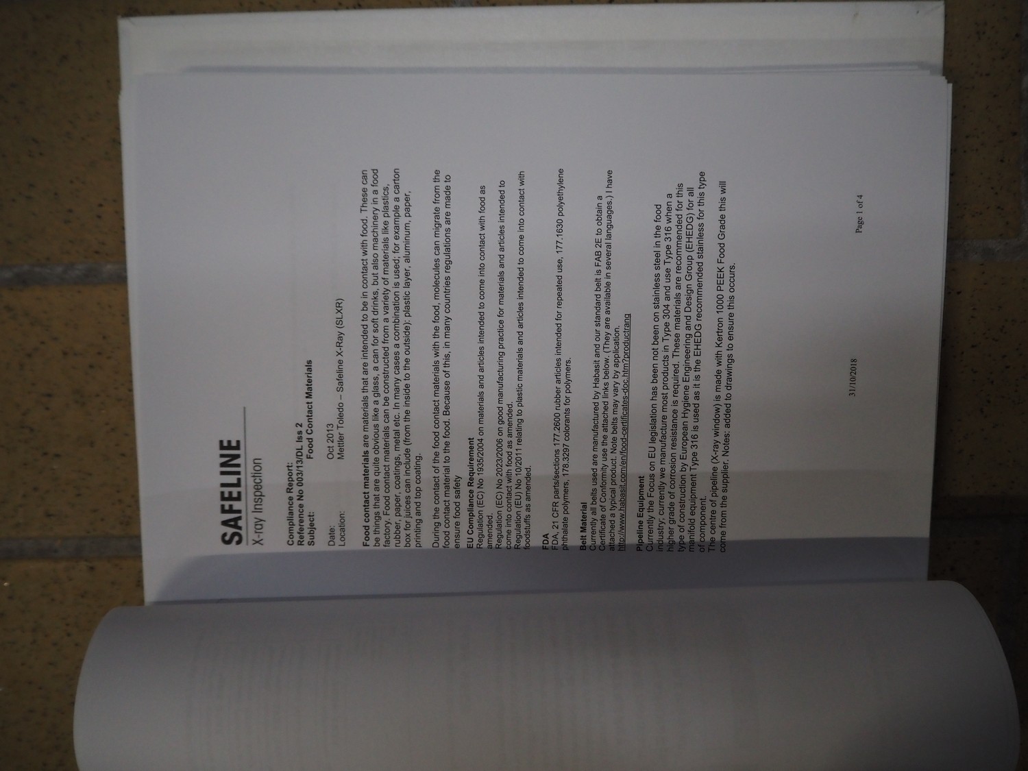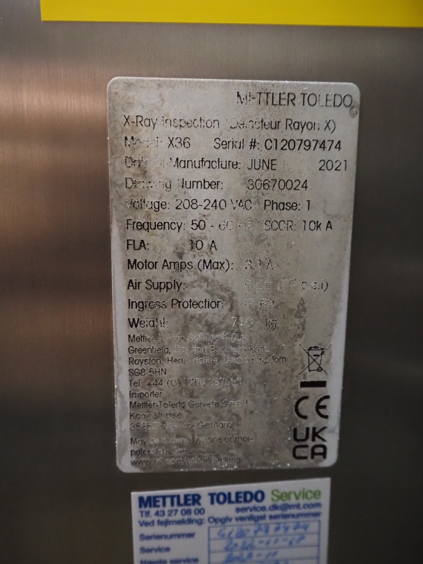 Mettler-Toledo Safeline Ltd x-ray scanner, model: X36, serial number: C120797474, year of construction: 2021, 208-240 V, 1 Ph, 50-60 Hz, 10 A, clearance: 480 mm x 210 mm, total dimensions: 2050 mm x 1100 mm x 2300 mm, Hillerslev outfeed belt, number: 3791-2021, dimensions: 1500 mm x 800 mm x 1600 mm.