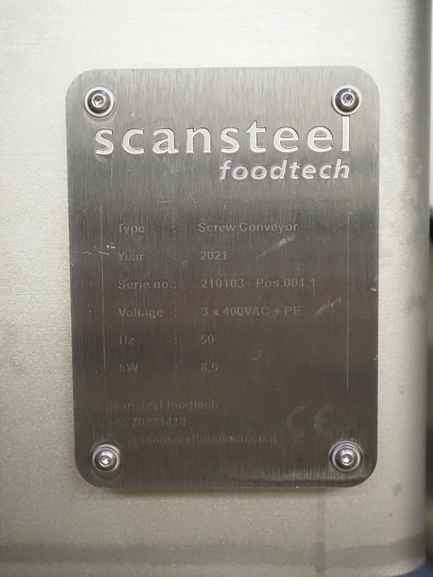 Scansteel Foodtech mobile in height adjustable transport screw, type: Screw Conveyor, serial number: 210103, year of construction: 2021, 400 V, 3 Ph, 50 Hz, 8.5 kW, diameter screw: 400 mm, tier: 340 mm, total dimensions: 6000 mm x 1500 mm x 1800 mm.