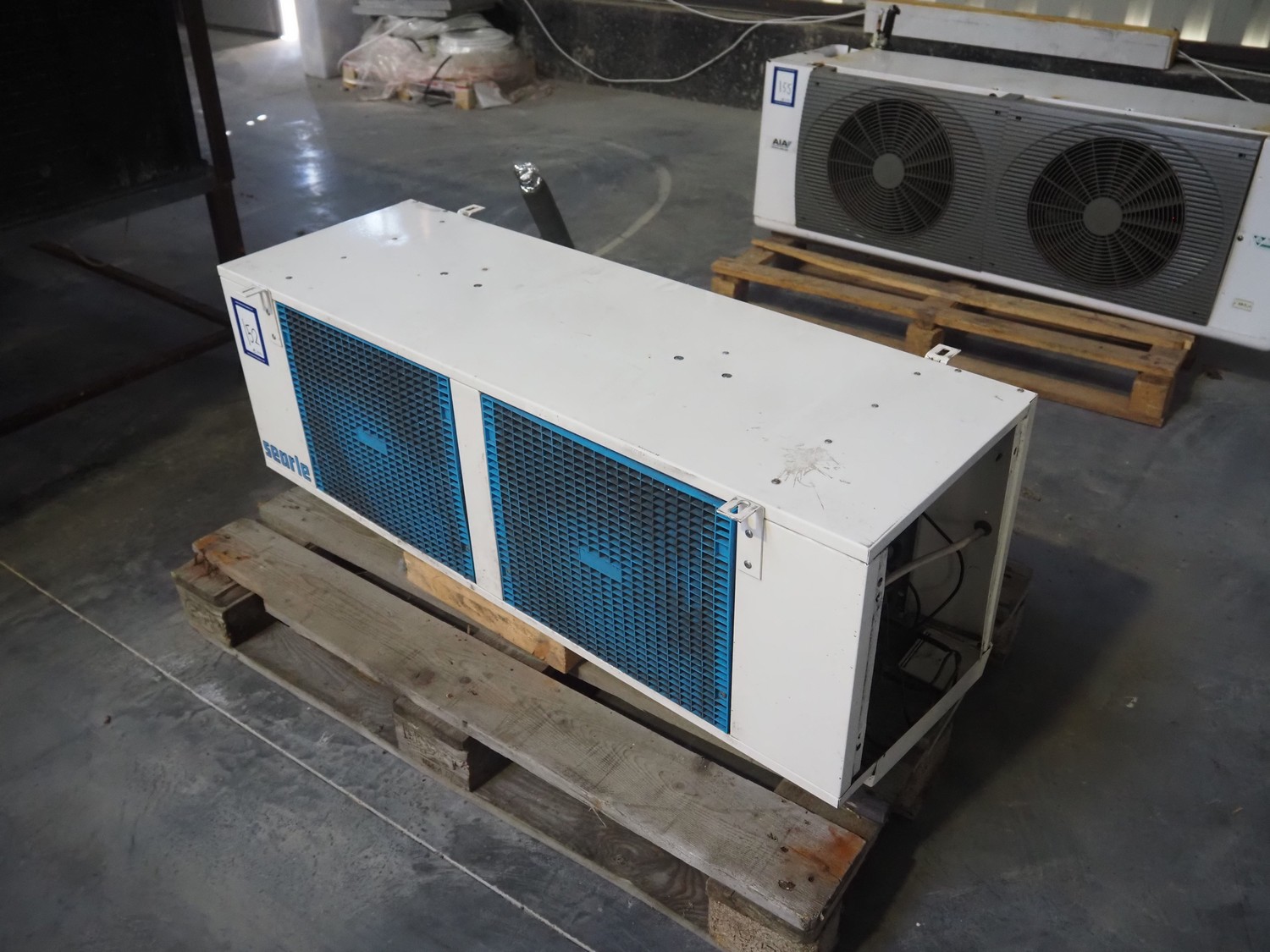 Searle evaporator with 2 fans, model: KS35-5, serial number: 102538, medium: HCFCs & HFCs, dimensions: 1150 mm x 370 mm x 470 mm.