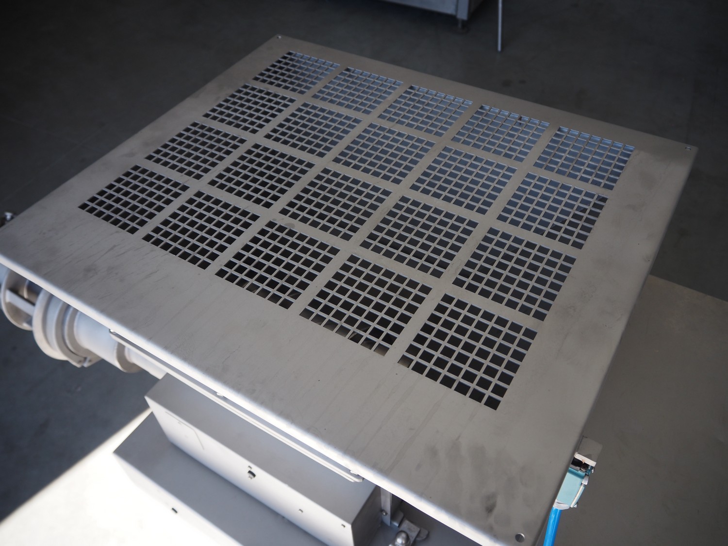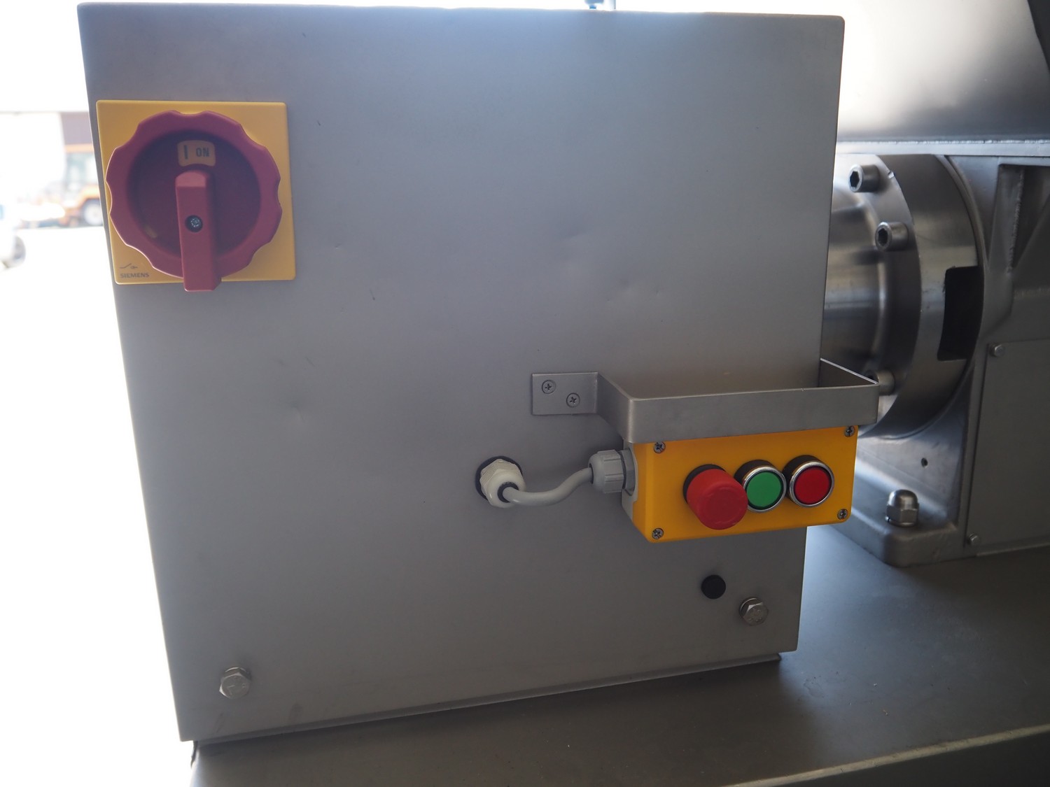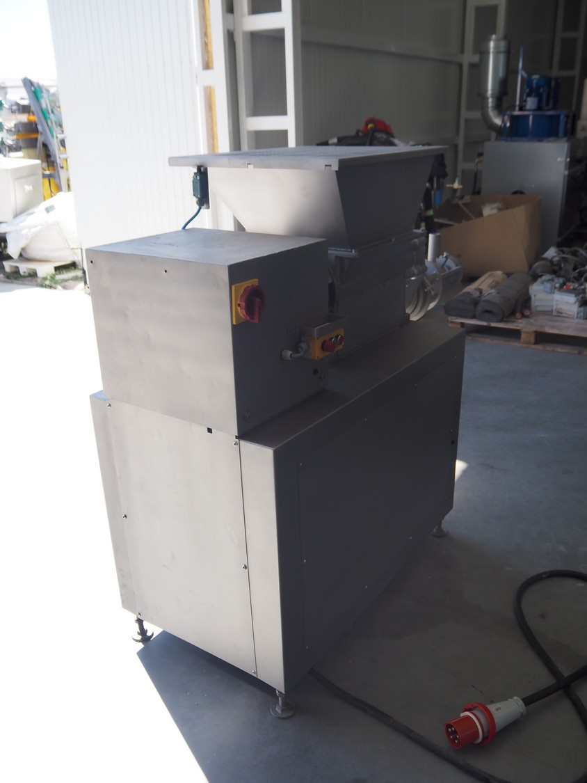 Provisur Technologies beehive separator, number: 41213, s/s worms, dimensions hopper: 650 mm x 500 mm x 300 mm, diameter drum perforations: 1 mm & 2 mm, total dimensions: 2020 mm x 680 mm x 1520 mm. Revised.