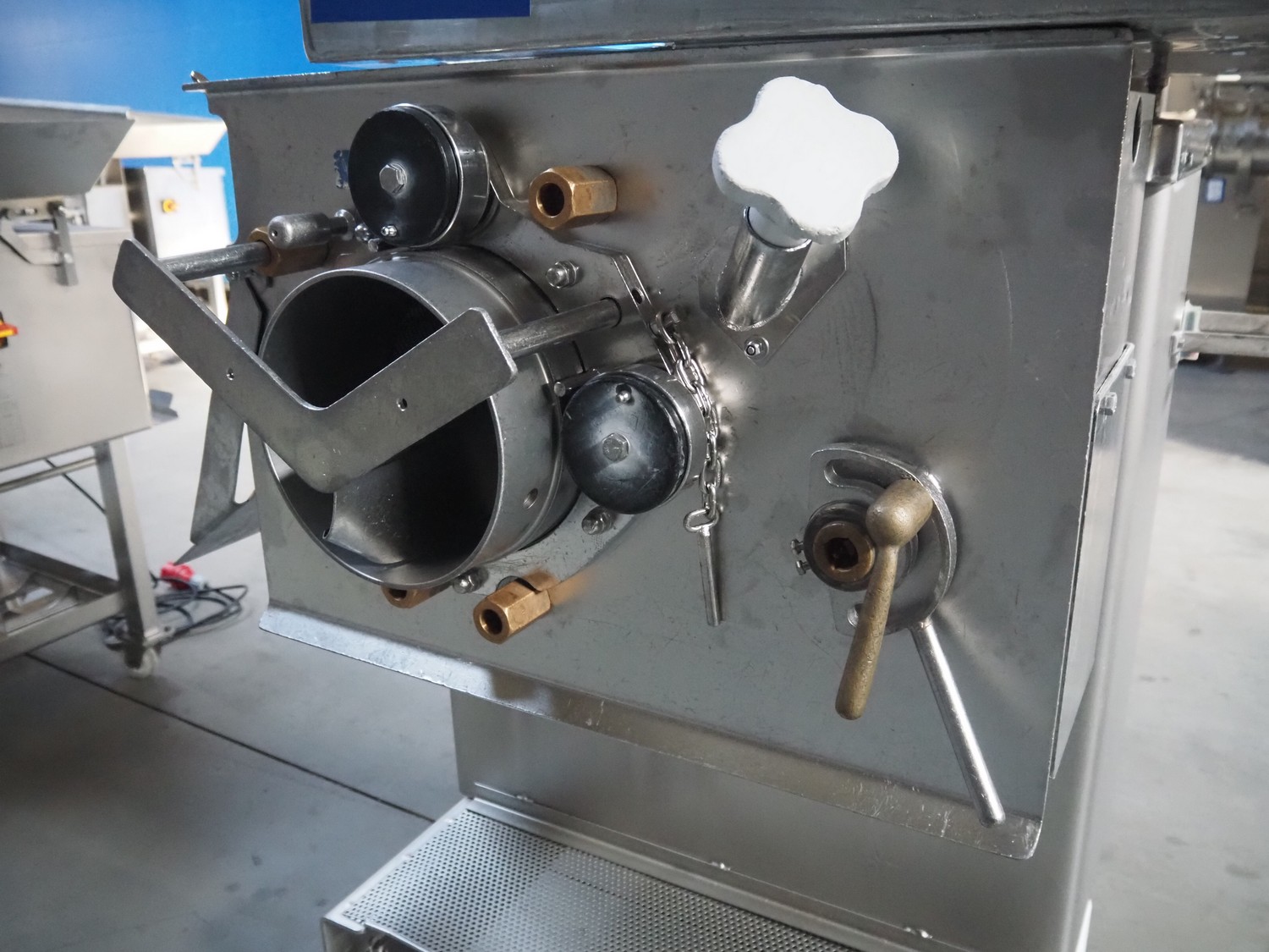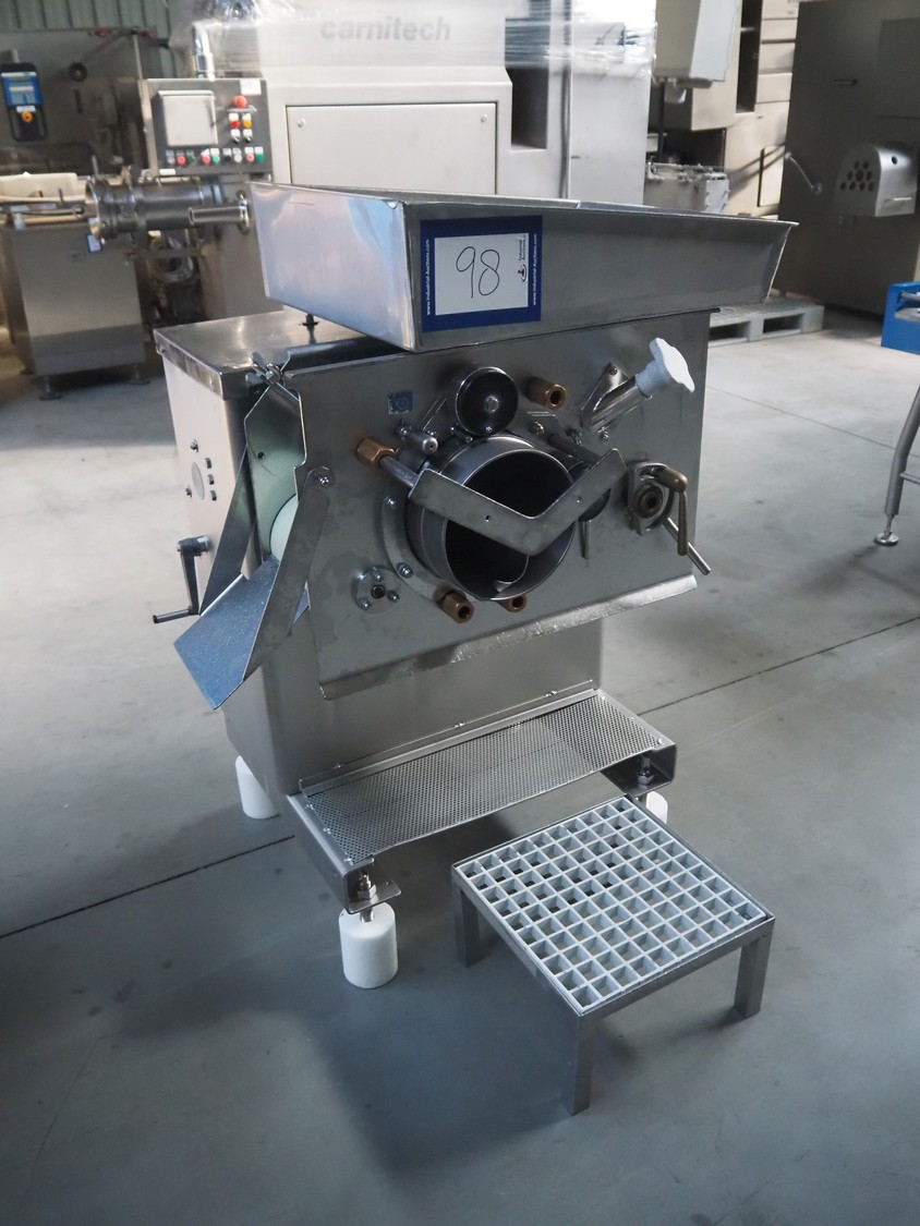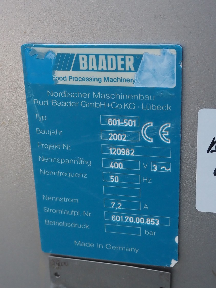 Baader separator, type: 601-501, serial number: 120982, year of construction: 2002, 400 V, 3 Ph, 50 Hz, 7.2 A, plastic belt, belt width: 210 mm, diameter output: 225 mm, diameter perforations: 2 mm, total dimensions: 1000 mm x 830 mm x 1170 mm.