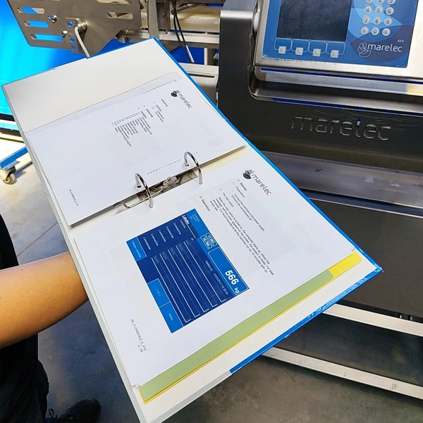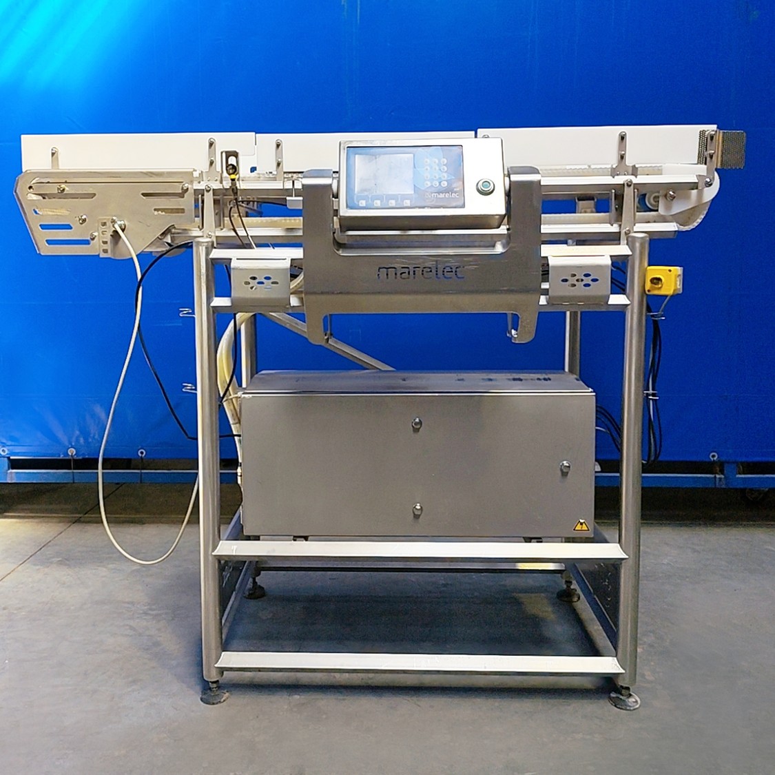 Marelec checkweigher, type: M1-F10, serial number: 7132, year of construction: 10/2020, plastic mesh belt, belt width: 300 mm, total dimensions: 2000 mm x 900 mm x 1600 mm.