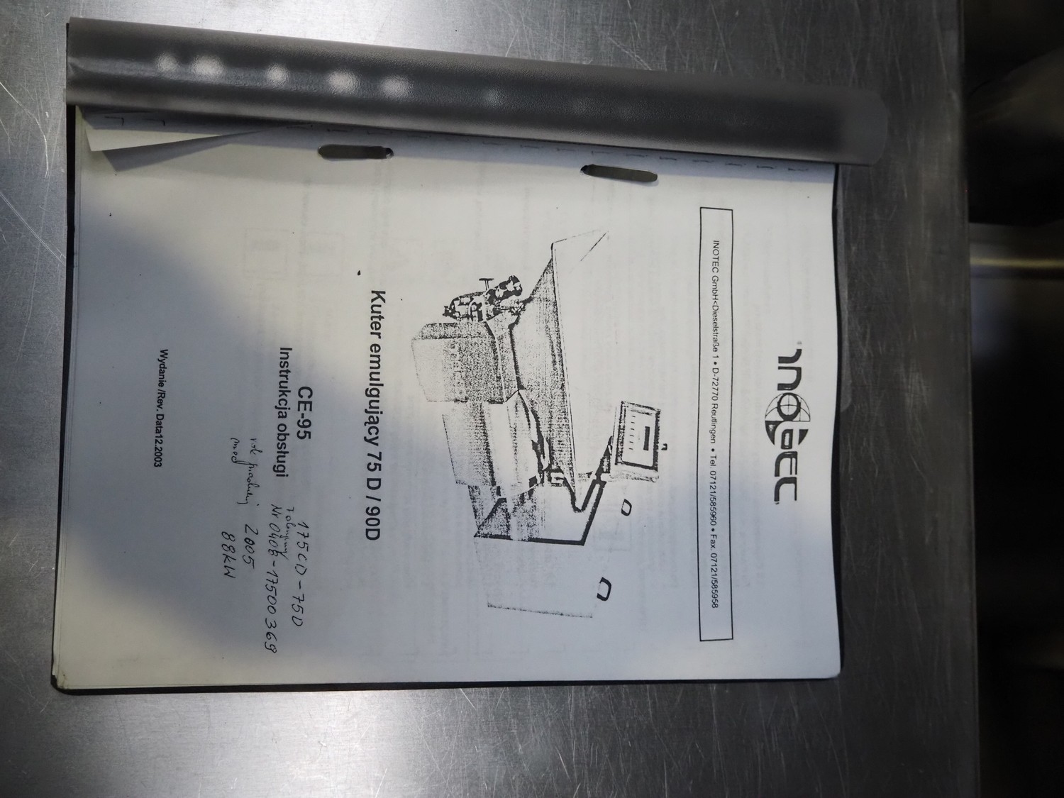 Inotec micro cutter, type: I175CD-75D, machine number: 101-00490, year of construction: 2006, 230/400 V, 3 Ph, 50 Hz, 142 A, 88 kW, plate diameter: 175 mm, dimensions: 1950 mm x 1150 mm x 1250 mm. Including crate with knifes and plates.