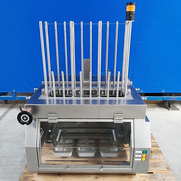 Tramper denester, type: D-360, serial number: 057, year of construction: 2013, 400 Vac, 6 bar, 160 kg, dimensions tray: (3x) 200 mm x 145 mm, total dimensions: 950 mm x 920 mm x 1400 mm.