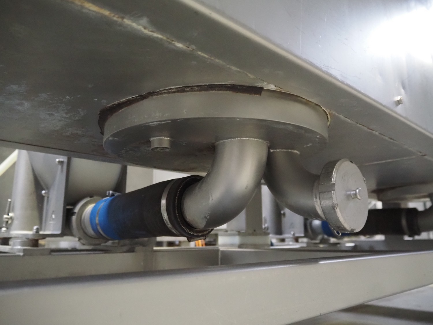 Schröder injector, type: IMAX 520, serial number: 520 2010 01, year of construction: 2001, 400 V, 50/60 Hz, 18 A, 9 kW, s/s walking beam, beam width: 510 mm, total dimensions: 2250 mm x 1600 mm x 2350 mm. Including filter tub, dimensions: 1900 mm x 1200 mm x 1500 mm.