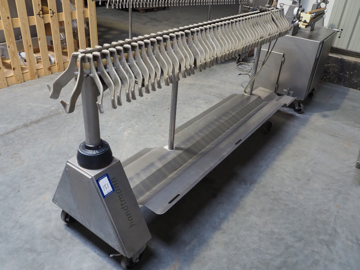 - Hanging line for sausages, type: 220-16, number: 1677, year of construction: 2007, dimensions hanging line: 2600 mm x 700 mm x 1300 mm.