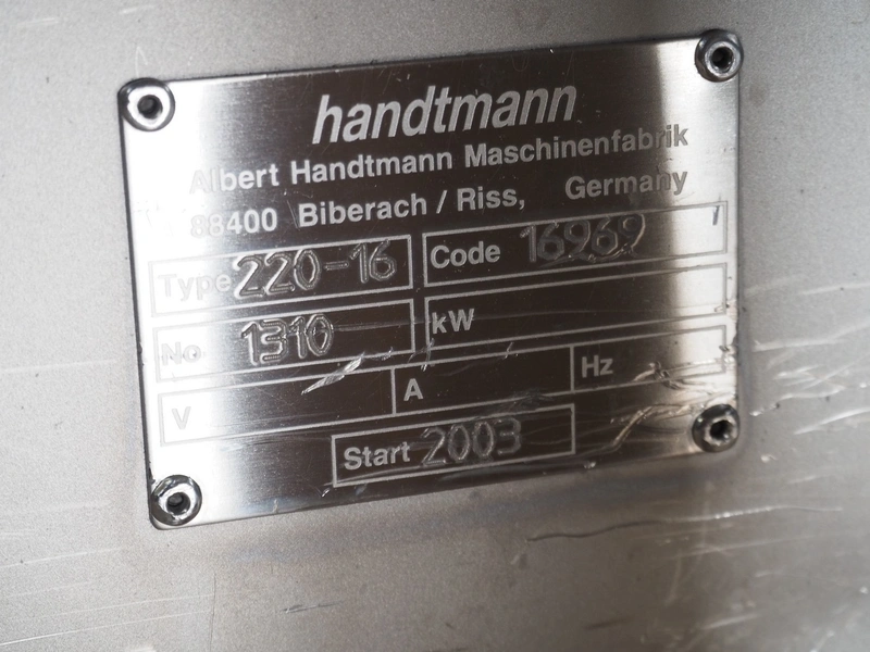 - Handtmann mobile hanging line for sausages, type: 220-16, number: 1310, year of construction: 2003, dimensions hanging line: 2600 mm x 500 mm x 1400 mm.