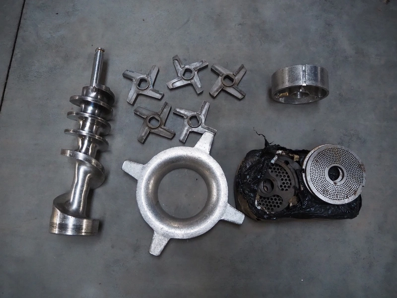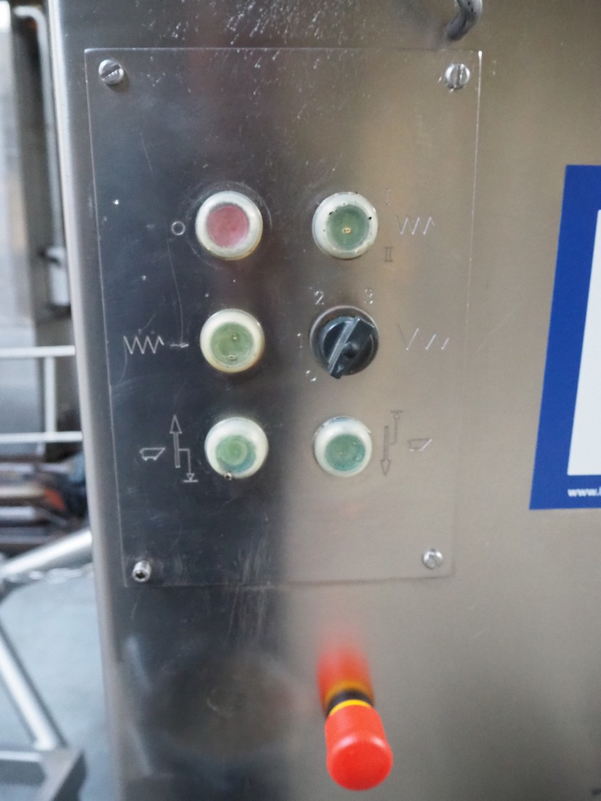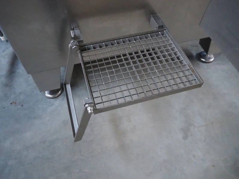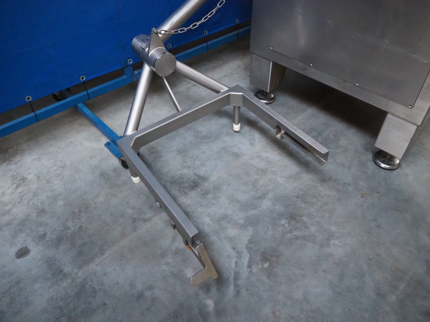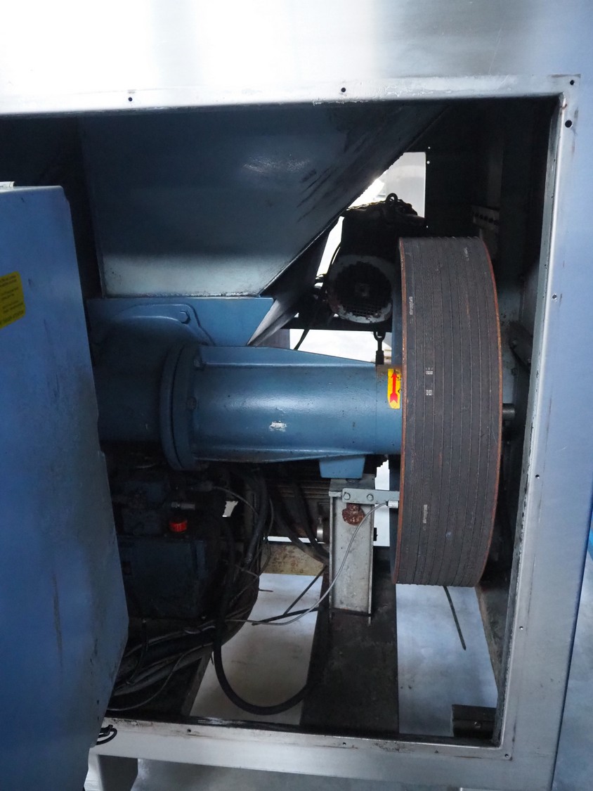 Seydelmann grinder with lifter for 200 liter meat bins, type: AG 160 B, machine number: 05642, year of construction: 2004, 400 V, 50 Hz, 74 A, 42 kW, 6-10 bar, diameter plate: 160 mm, total dimensions: 2850 mm x 2100 mm x 1750 mm.