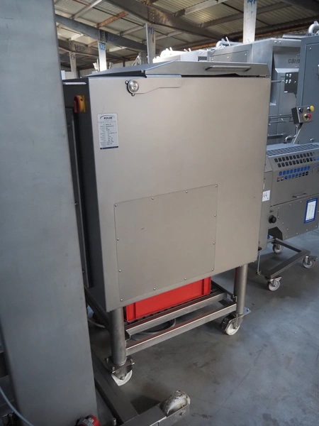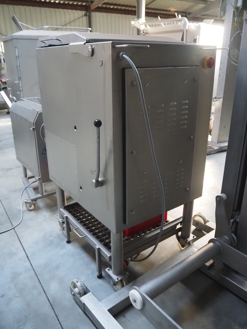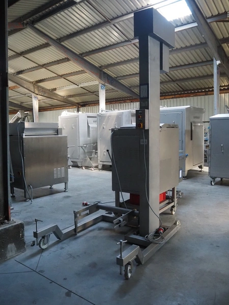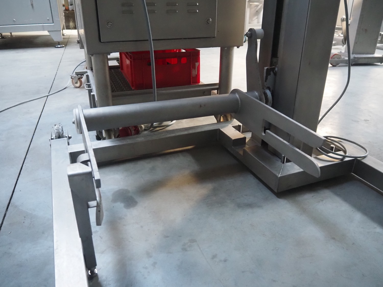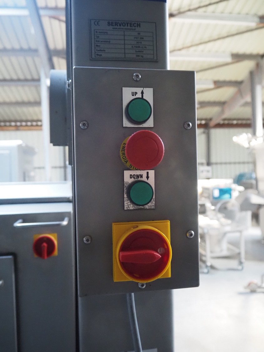 - Servotech mobile lifter for 200 liter meat bins, type: PST 200, machine number: 58, year of construction: 2018, 400 V, 3 Ph, 2.1 A, 0.75 kW, weight: 300 kg, elevating height: 1900 mm, total dimensions: 1400 mm x 1700 mm x 3050 mm;