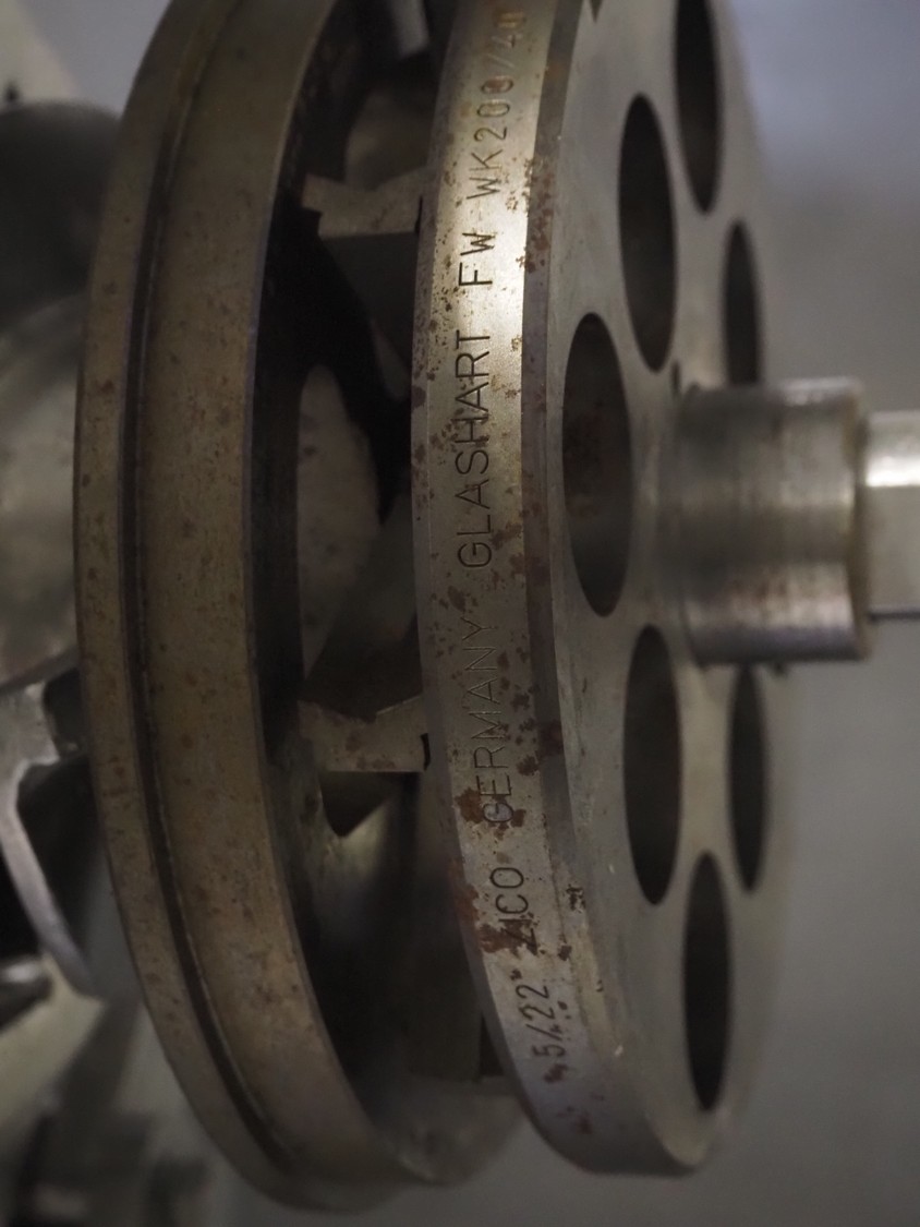 Carnitech mixer-grinder, type: CT3113, serial number: 04-0262, year of construction: 2005, 400 V, 3 Ph, 50 Hz, plate diameter: 240 mm, total dimensions: 2300 mm x 1950 mm x 2500 mm.