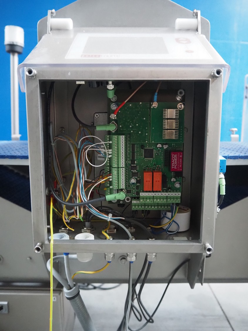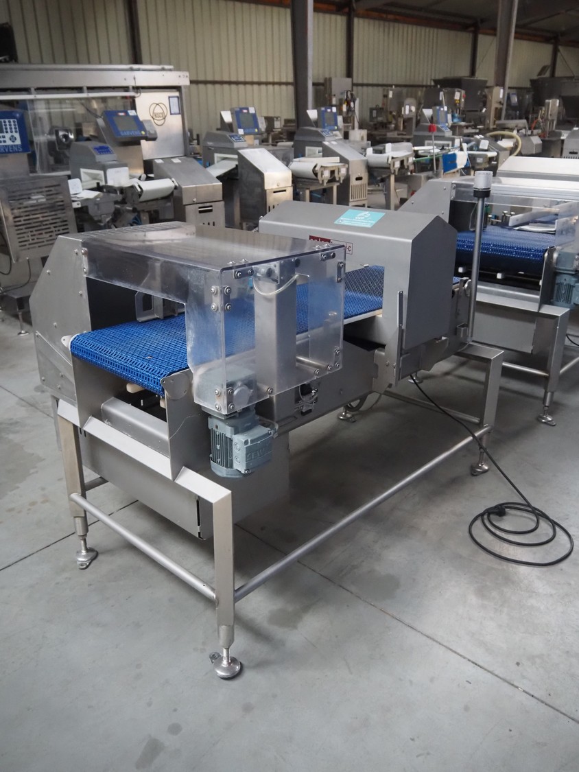Pulsotronic metal detector with rejector, type: M-pulse BD-HD 500 x 175 LPW MFT, serial number: 90007346, year of construction: 2018, 115/230 V, 1 Ph, 50/60 Hz, 16A, 350 W, 4-6 bar, plastic mesh belt, belt width: 450 mm, clearance: 310 mm x 150 mm, transport belt type: HQ-HD 1600 x 450-GK (WVG), serial number: 90003522, year of construction: 2012, 230 V, 1 Ph, 50/60 Hz, 350 W, 4-6 bar, total dimensions: 1850 mm x 1100 mm x 1270 mm.
