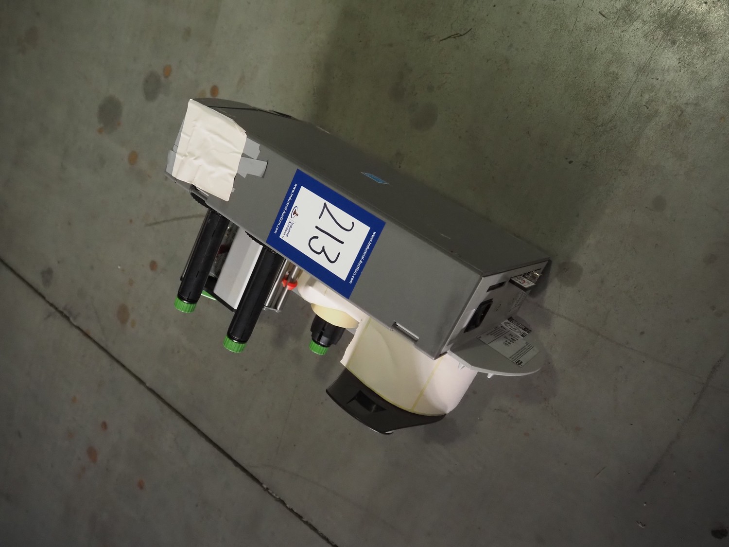 CAB label printer, model: A4+/300P, serial number: 0091230 U29, 100/240 V, 1 Ph, 50/60 Hz, dimensions: 450 mm x 240 mm x 275 mm. Missing cover.