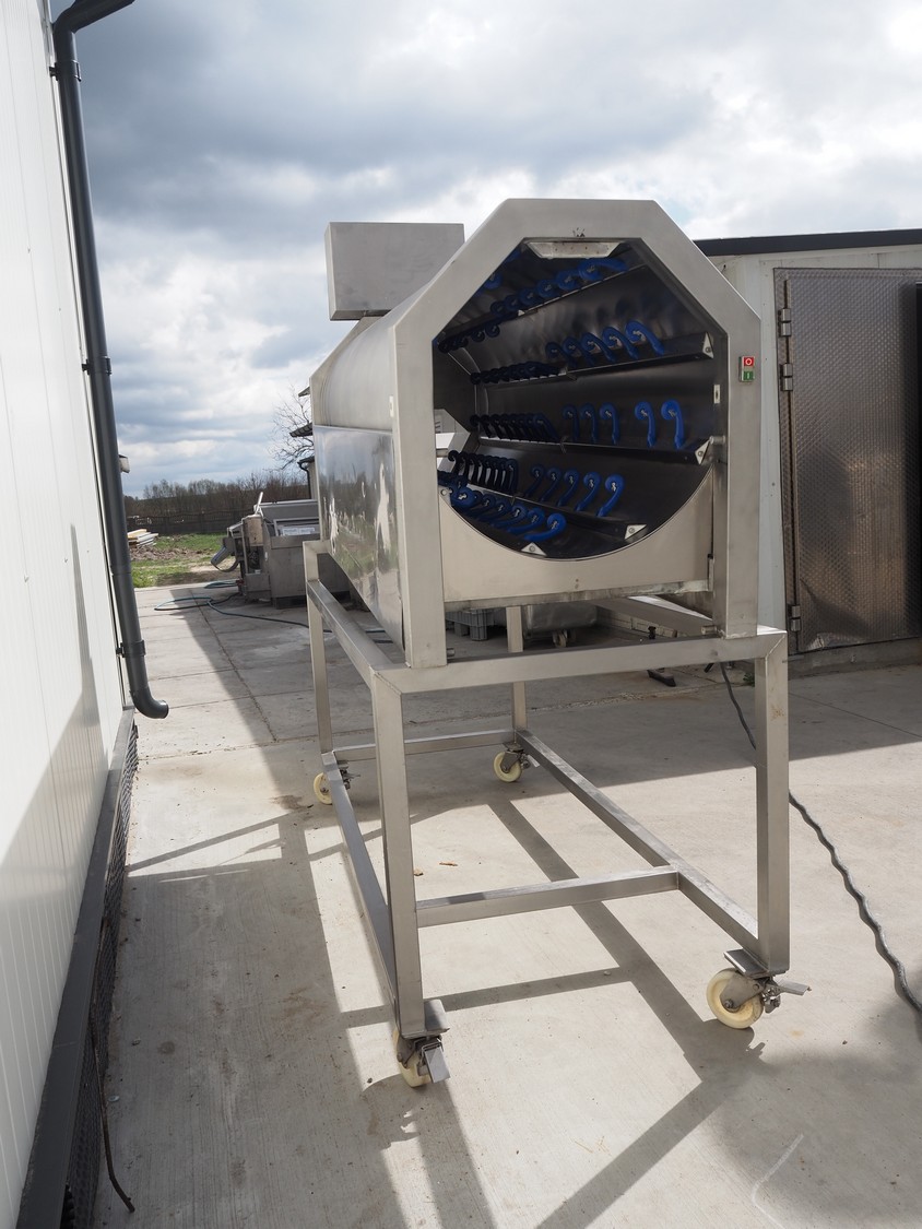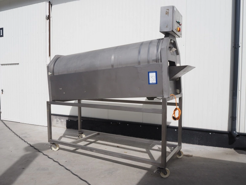 Heinrich GmbH mobile sausage cutter, model: Trenn-Fix, serial number: HM 920502, 220 V, 50 Hz, diameter drum: 750 mm, total dimensions: 2850 mm x 1000 mm x 2220 mm.