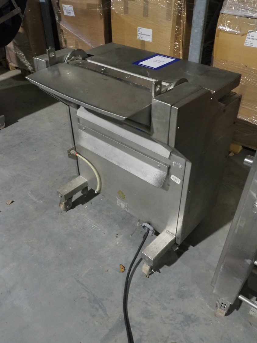 Townsend mobile skinning machine, model: 7500, serial number: 1181, year of construction: 1992, 380 V, 3 Ph, 50 Hz, 2.0 A, working width: 520 mm, foot control, total dimensions: 900 mm x 550 mm x 1100 mm.