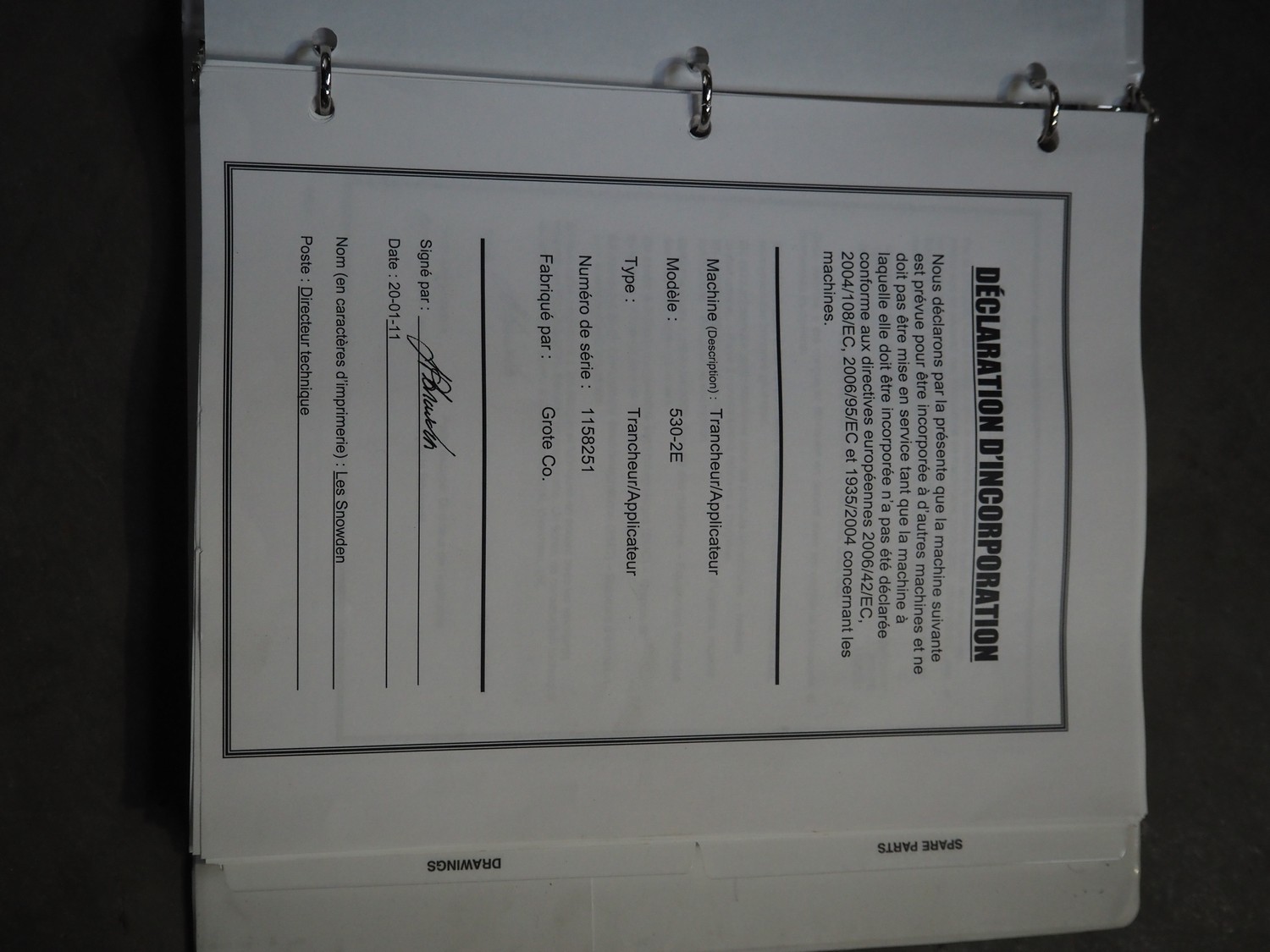 Grote slicer/applicator, model: S/A-530-2E, serial number: 1158251, 400 V, 3 Ph, 50 Hz, diameter: (2x) 110 mm, total dimensions: 2000 mm x 1000 mm x 2000 mm.